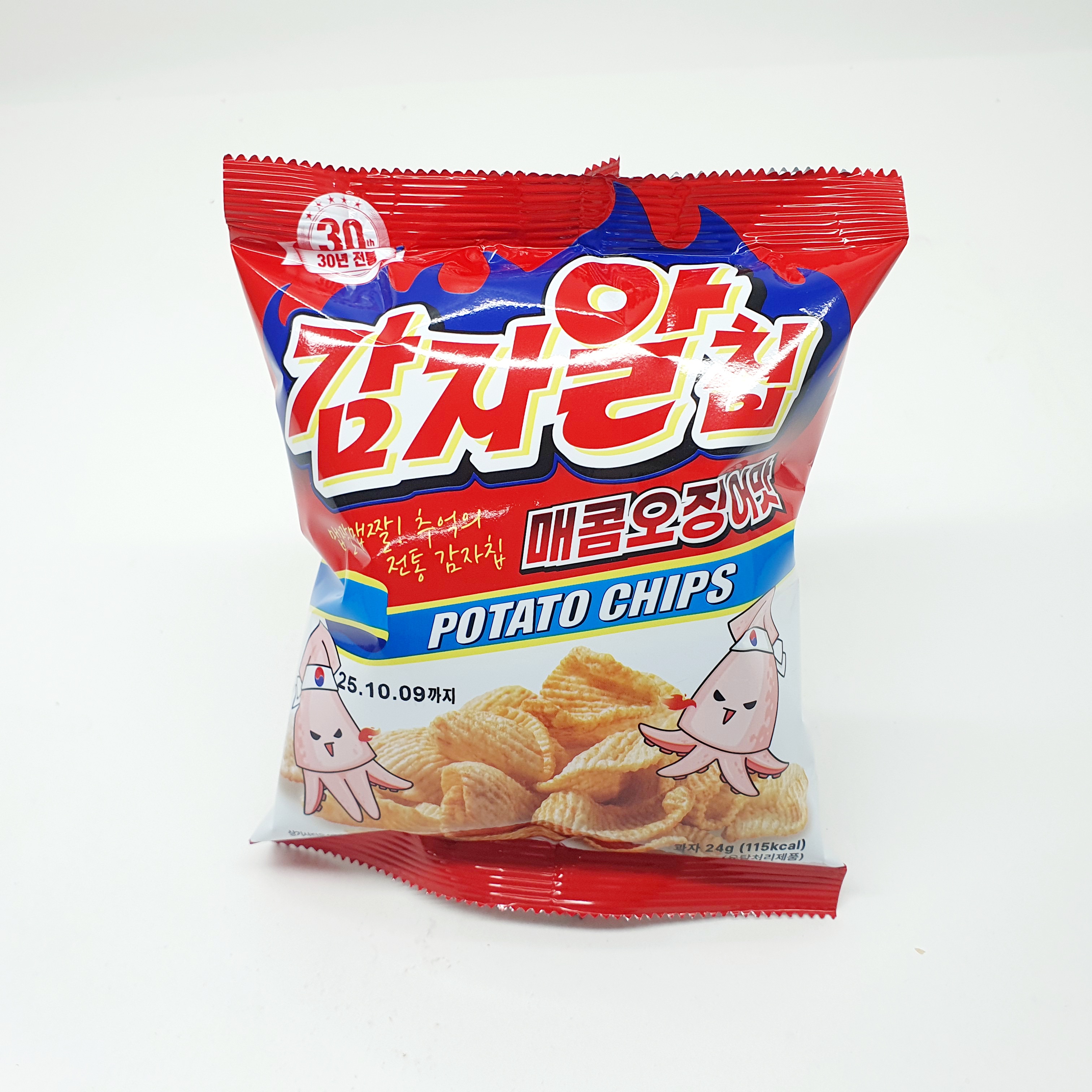 안녕하세요 :)오늘 소개할 스낵은 한 번 먹으면 멈출 수 없는매콤 짭짤한 감자알칩 매콤오징어맛 입니다!겉보기엔 익숙한 과자 같지만,맛과 식감은 한층 더 업그레이드!고소한 감자와 진한 오징어 맛, 거기에 매콤함까지 더해진 중독적 스낵이에요. 🧾 제품정보제품명: 감자알칩 매콤오징어맛식품유형: 과자 (유탕처리제품)내용량: 24g (115 kcal)제조원: 영양제과(주) – 충북 충주시 신니면 덕고개로 255유통전문판매원: 주식회사 현동인터내셔널 – 경기도 남양주시 진건읍 사릉로 620번길 157소비기한: 제품 전면 표기일까지고객상담실: 1533-6987 / 홈페이지 바로가기포장재질: 폴리에틸렌품목보고번호: 20070433247113HACCP 인증 완료🥔 원재료감자파파드 [인도산: 밀가루, 감자전분, 감자플..