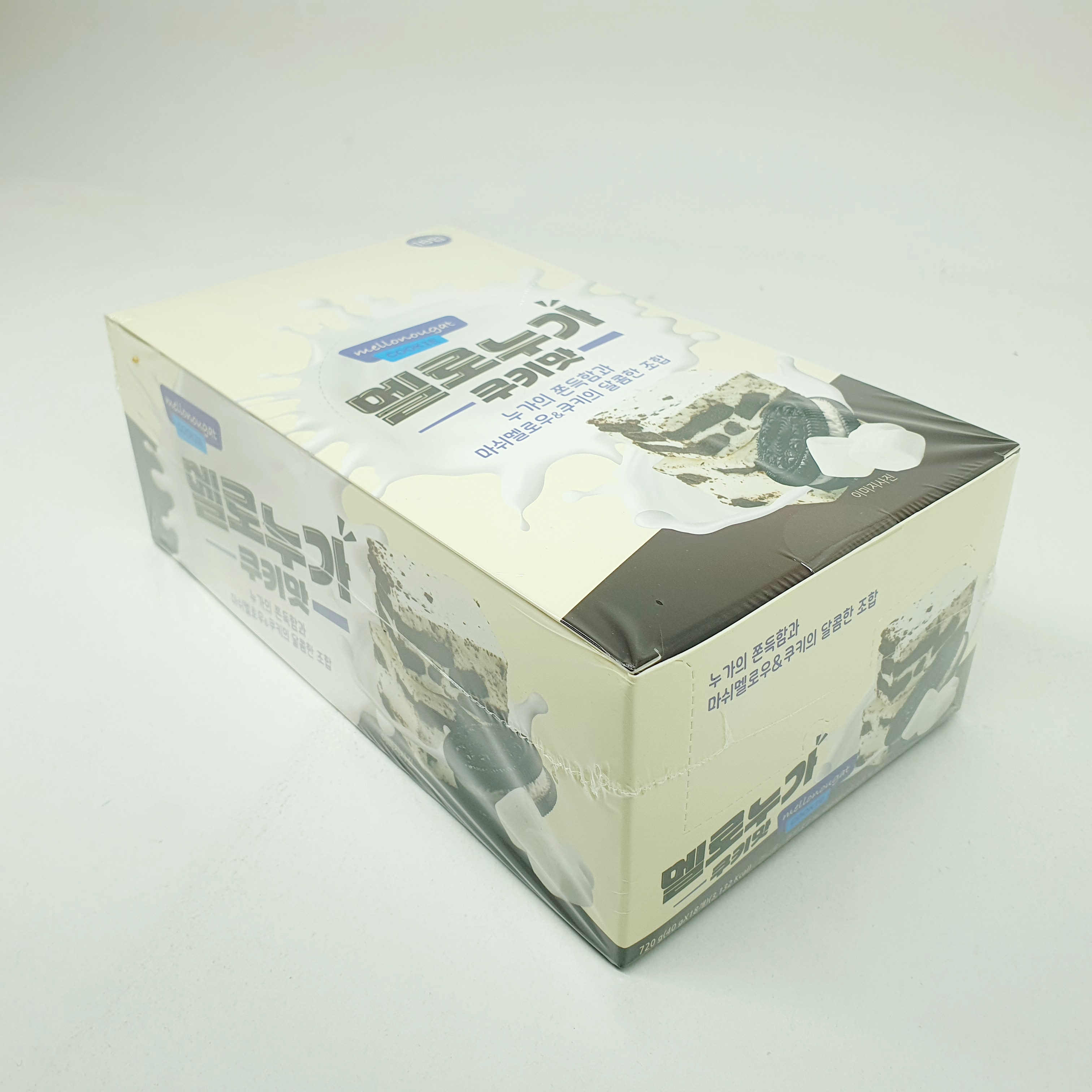 오레오 쿠키를 뒤집어서 먹는 맛! 마시멜로가 밖으로 쿠키가 안으로 들어가는새로운 구조! 멜로누가 쿠키맛을 소개해 드립니다. 제품명: 멜로누가 쿠키맛내용량: 720g(40gX18개) (3,132 Kcal)식품유형: 캔디류영양정보 총내용량 720g(40gx18개) 1개(40g)당 174 Kcal원재료명 비스킷(밀가루,대두유,트레할로스,코코아분말,버터), 말티톨시럽, 맥아당시럽,트레할로스,버터,유지방,전지분유, 쿠키,마쉬멜로우, 젤라틴(쇠고기),합성향료(우유향),정제소금 대두, 밀, 우유, 쇠고기 함유 유전자변형 대두 포함 가능성 있음 수입판매원: (주)대경인터내셔널(T:031-593-8117) 경기도 남양주시 수 별내중앙로 30 (별내동) 별내로데오몰 305-518제조회사: FUJIAN FUPAIYUAN ..