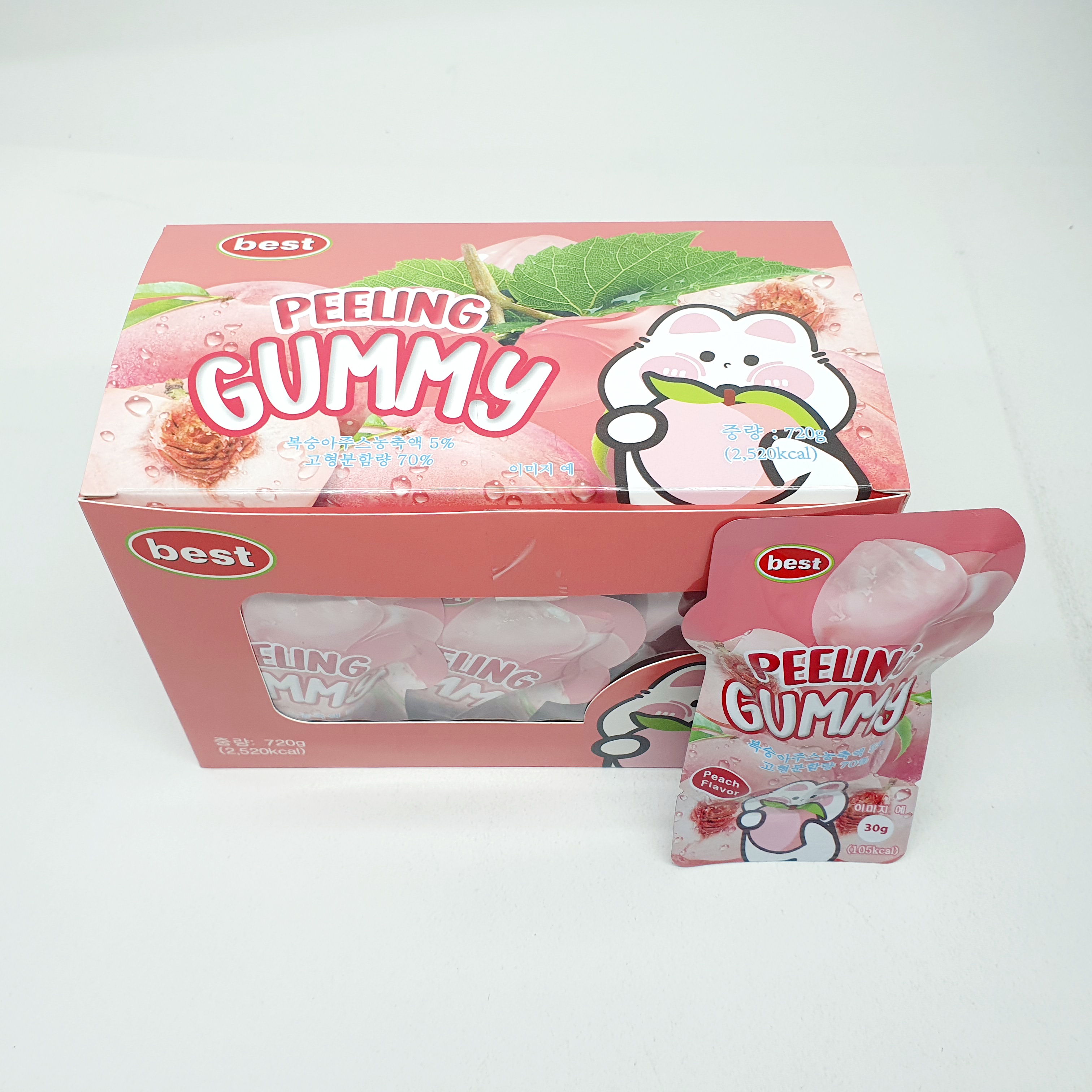 말랑말랑 맛있는 복숭아맛 구미를 소개해 드립니다.^^제품명: 베스트필링구미복숭아맛(복숭아주스농축액5%, 합성복숭아향0.560%함유)원산지: 중국·식품유형캔디류제조원: GUANGDONGHONGCHENGHEALTHY FOOD CO, LTD.수입원: 다라무역 T.070-8848-3858 서울특별시 강남구 테헤란로 3131814호(역삼동,성지 하이츠1)중량: 30g(105kcal)원재료명: 맥아시럽,설탕,정제수,복숭 아주스농축액5%(고형분함량70%),트레할로스젤라틴(소), D-소비톨액카나우바왁스,카라기난,한천,펙틴,구연산, 구연산삼나트륨DL-사과산,착색료(식용색소황색제4호, 식용색소적색제40호),합성향료(복숭아향0.560%) 쇠고기, 복숭아 함유 내포장재질: 폴리프로필렌※이 제품은우유,밀,대두,생선을 사용한 제..