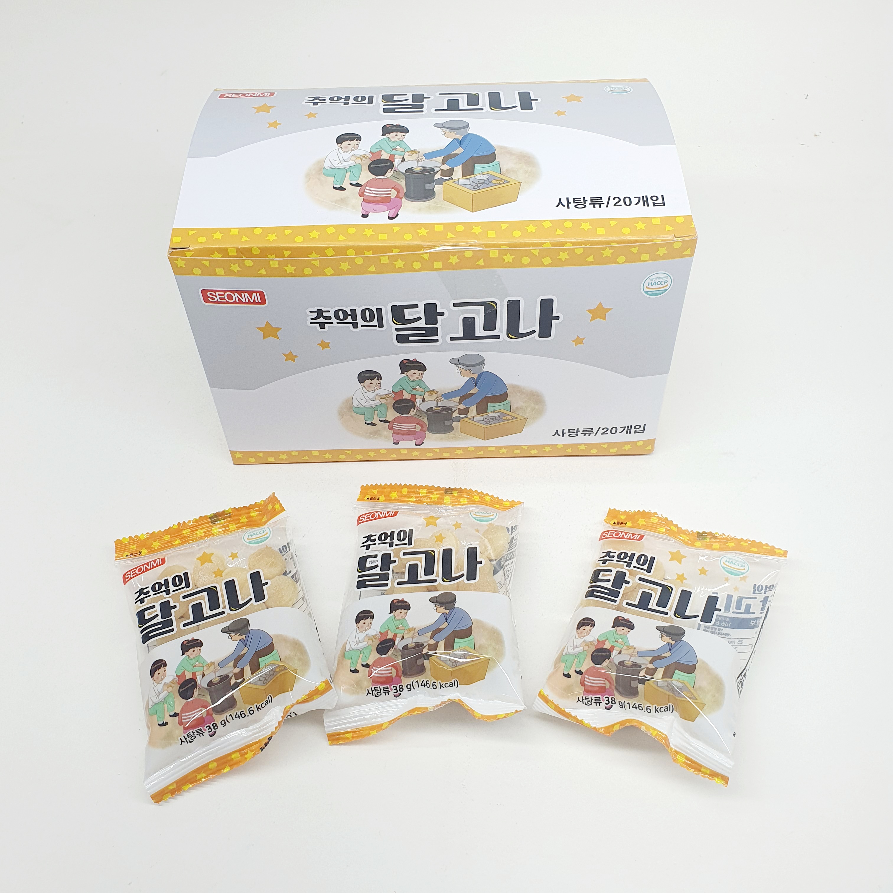 오늘 소개해 드릴 제품은 추억의 달고나 사탕입니다.총내용량 38g 146.6 kcal 제품명 달고나식품유형 사탕류 제조원 선미식품/부산시 기장군 및 판매원 정관면 달음산길 18원재료명 백설탕, 물엿, 탄산수소나트륨 내용량 38g 나트륨 25 mg 1% 탄수화물 34 g 10 % 당류 29 g 29% 지방 0.1 g 0% 트랜스지방 0g 포화지방 0.1 g 1% 콜레스테롤 0mg 0% 단백질 0g 0% 포장재질 폴리프로필렌(내면) 품목보고번호 2013015632117 자 상자를 열어볼까요~?상자 안에는 20봉지의 달고나 사탕이 들어있어요. 봉지 안에는 20개의 달고나 사탕이 들어있어요.달고나에 물엿이 섞인 맛인데, 입안에서 빨리 녹아서 먹기에 부담이 없습니다. 포장지의 그림이 아주 인상적인 제품이에요...