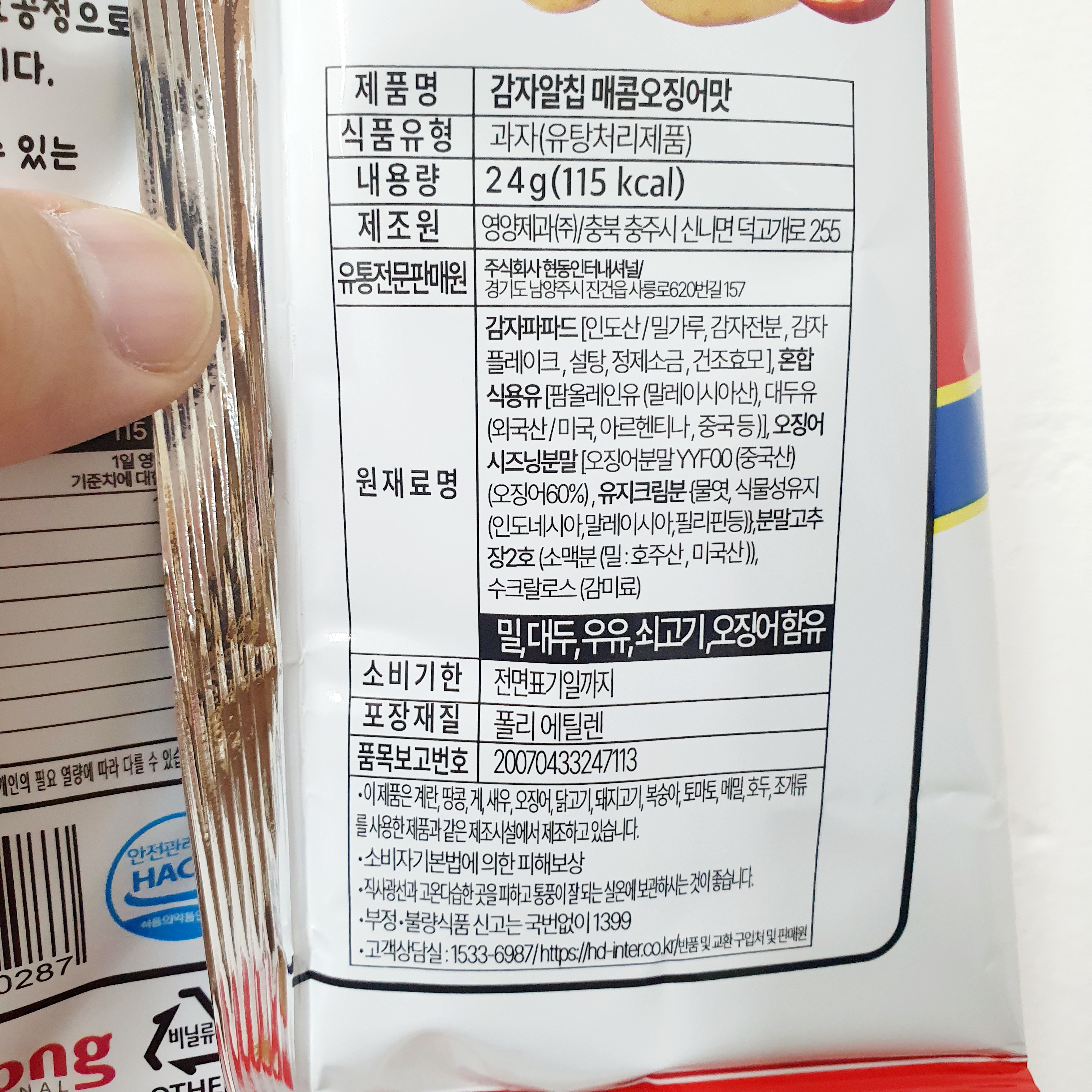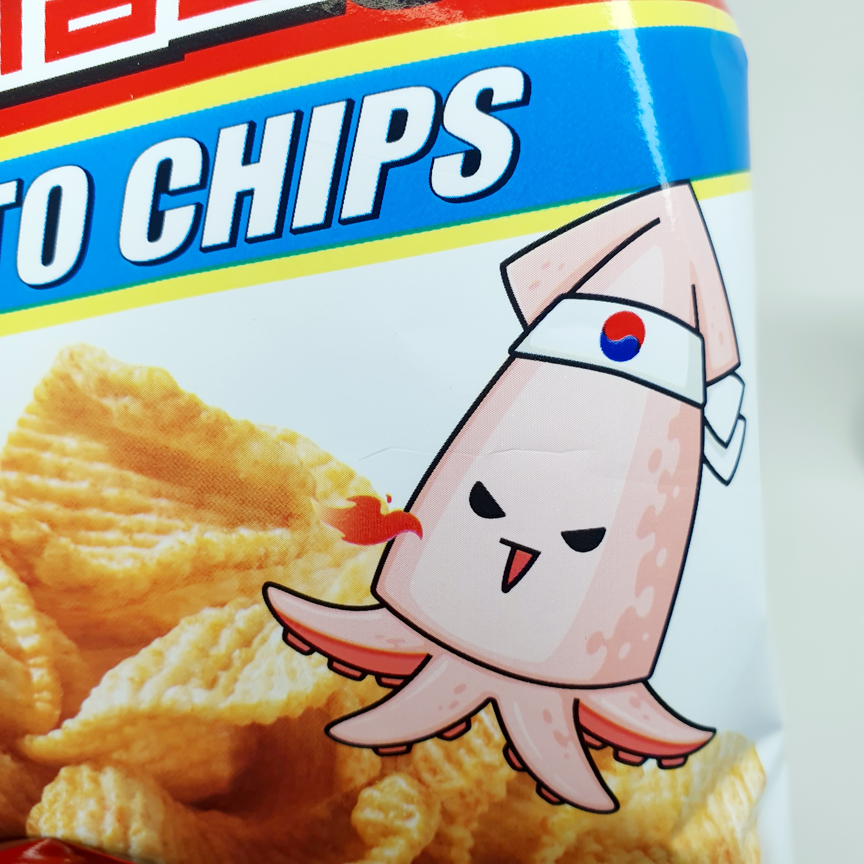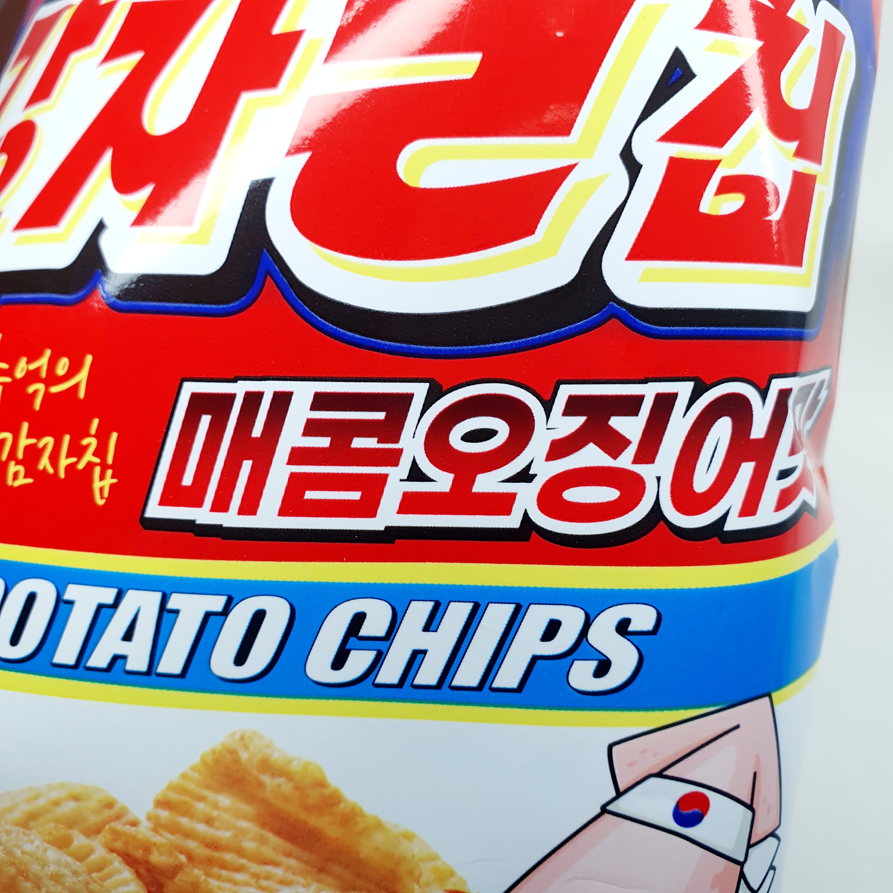 고소한 감자와 진한 오징어 맛, 거기에 매콤함까지 더해진 중독적 스낵이에요.