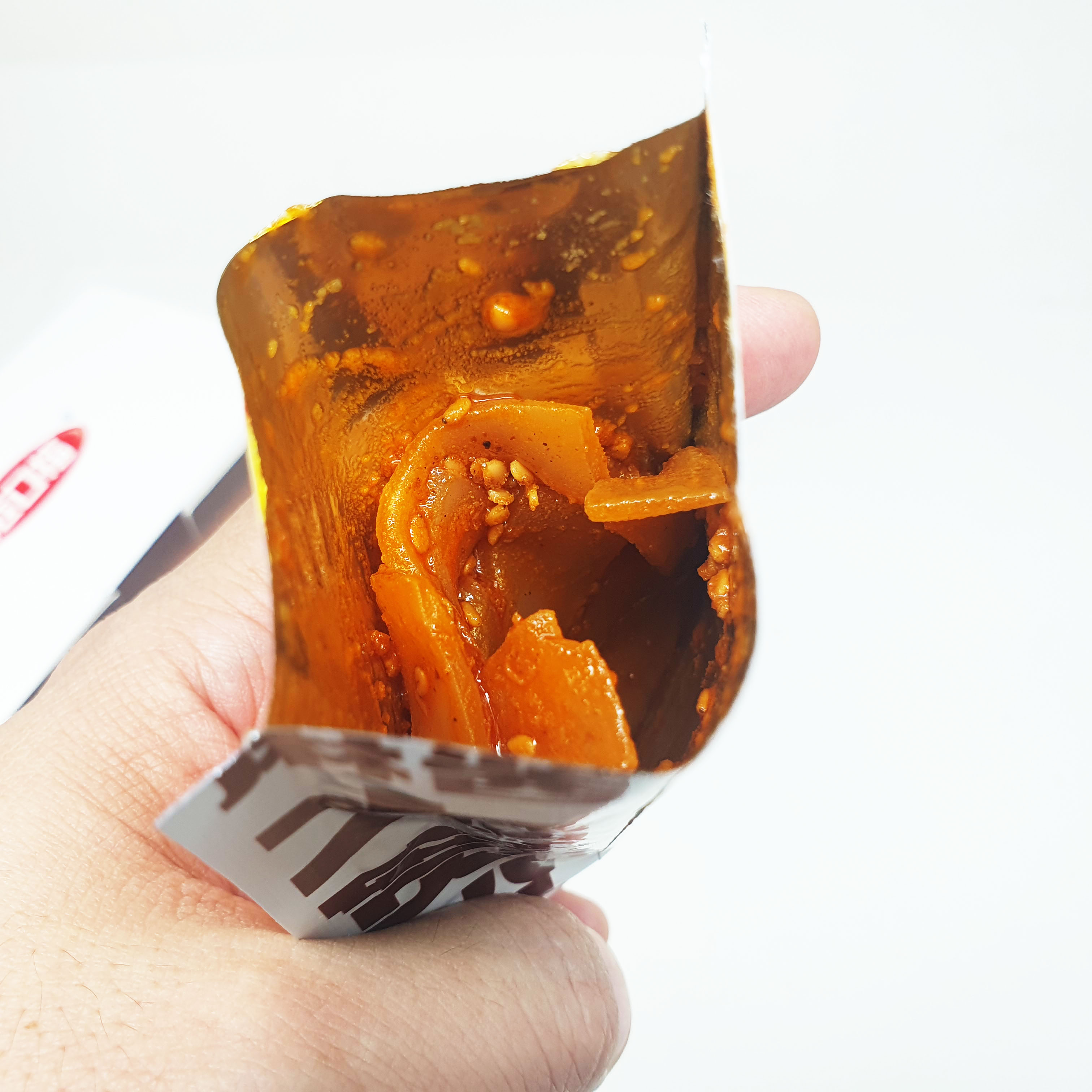 - 포장을 열면 떡볶이나 찜닭에 넣던 넓적한 당면이 들어있어, 한눈에 먹음직스럽게 보입니다.