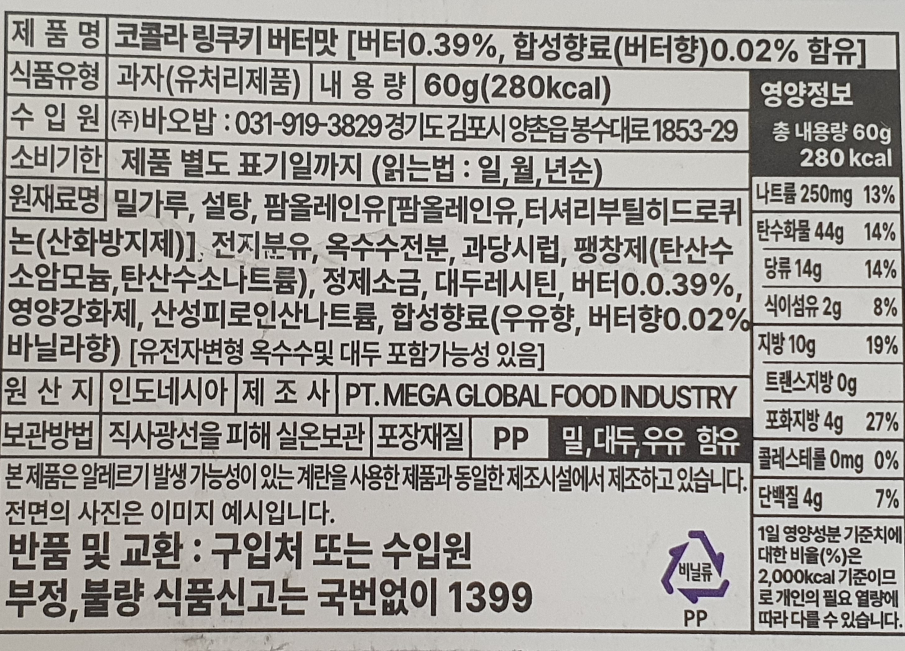 • 제조사 : PT. MEGA GLOBAL FOOD INDUSTRY