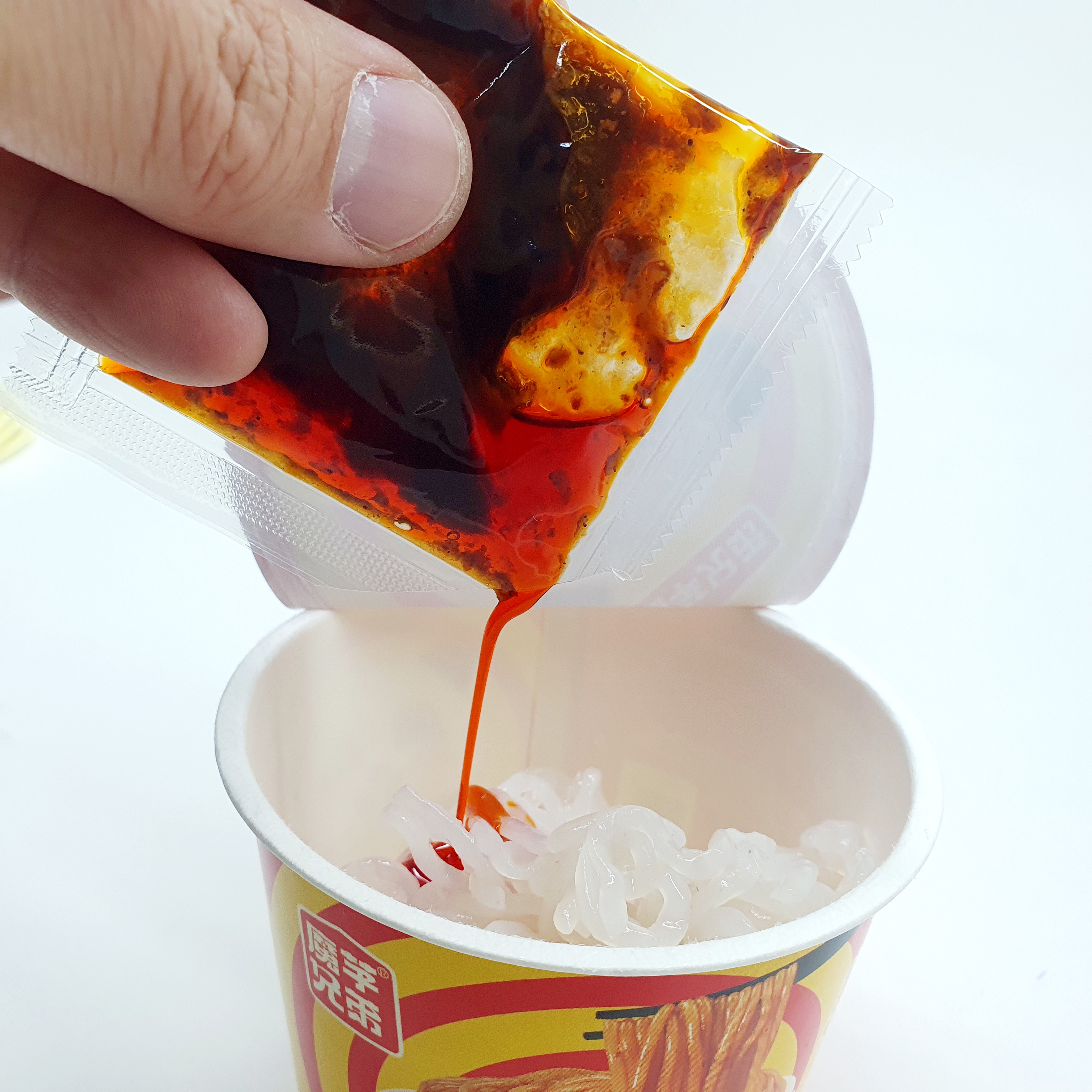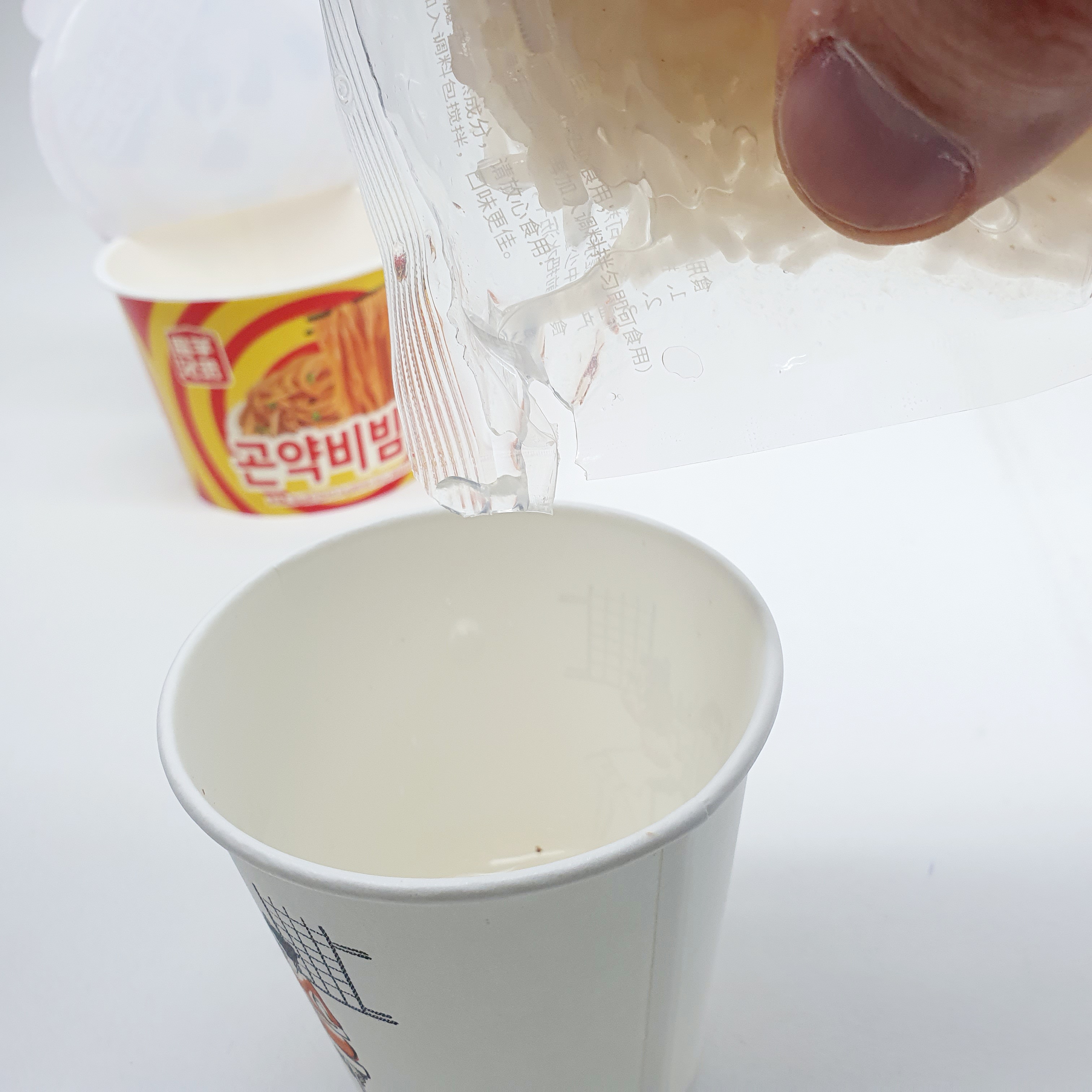용기에 곤약면을 넣고 액상스프를 부어주세요.