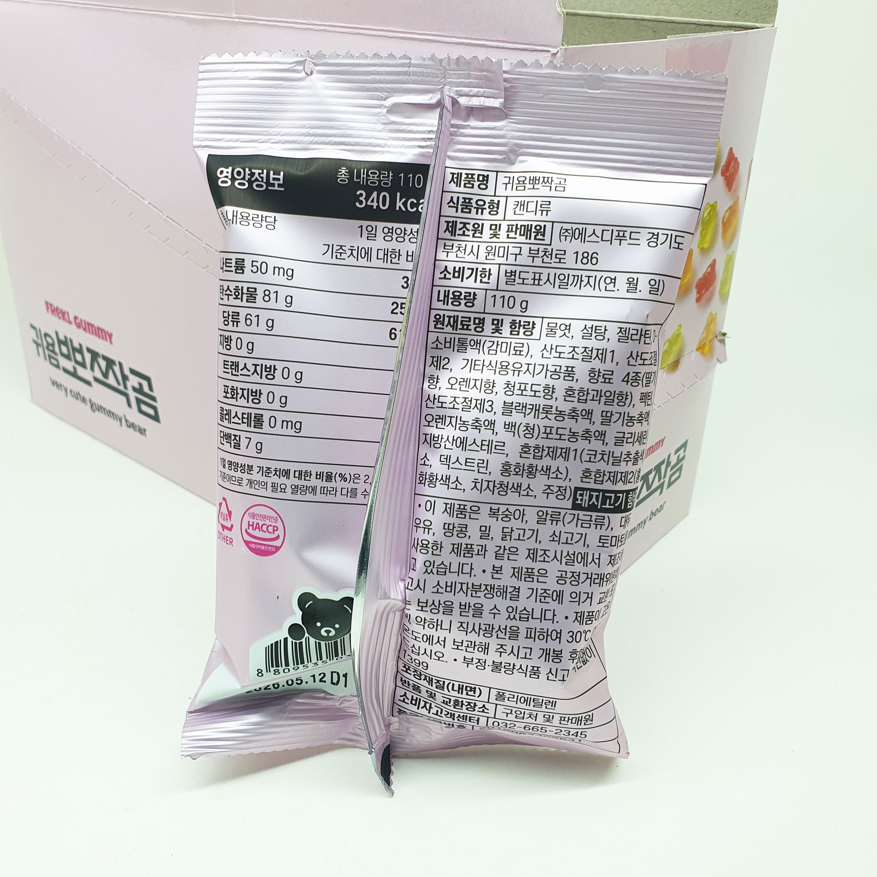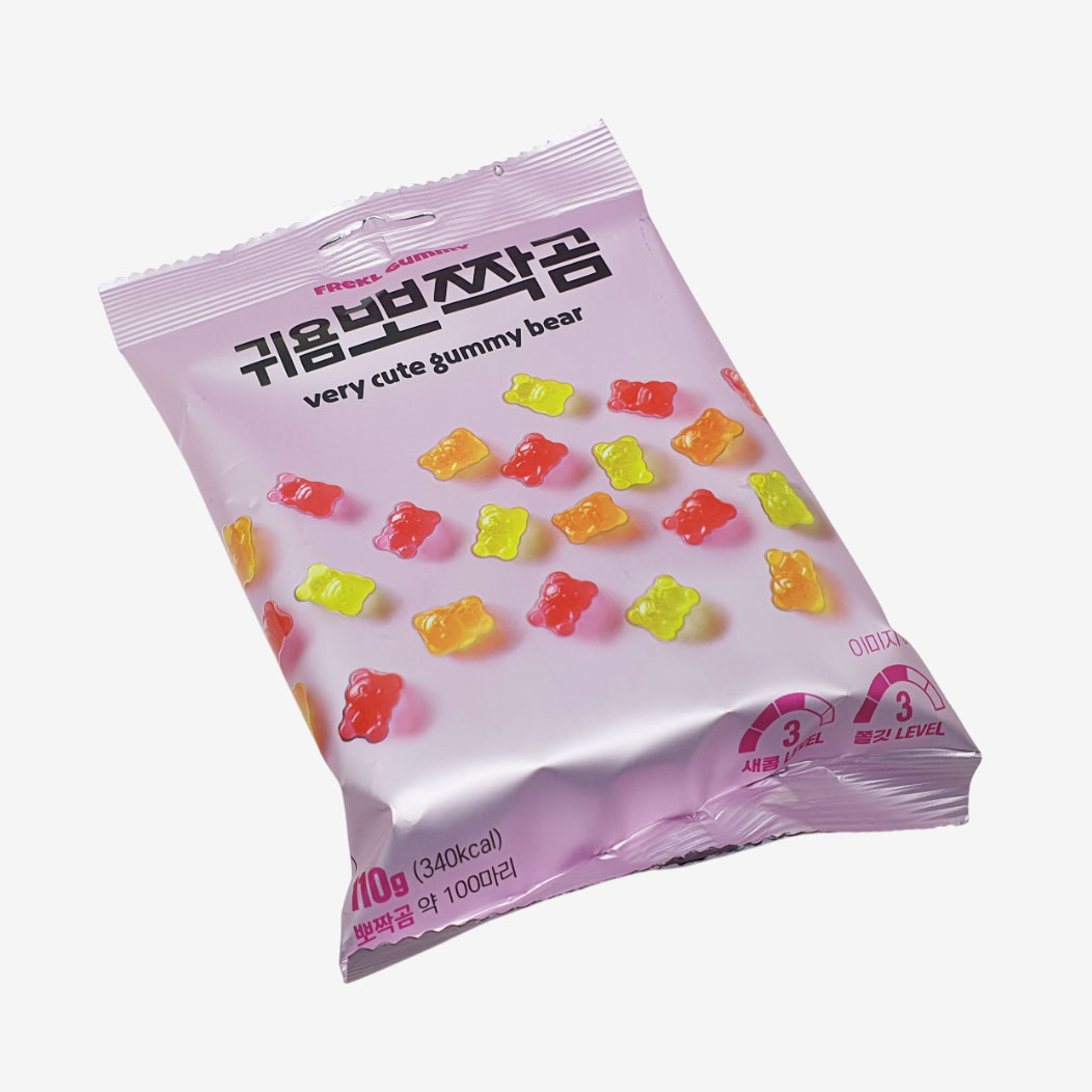하리보가 전 세계적으로 유명한 곰젤리라면, 이 귀욤뽀짝곰은 하리보 컨셉을 닮은 한국형 젤리라고 볼 수 있어요.