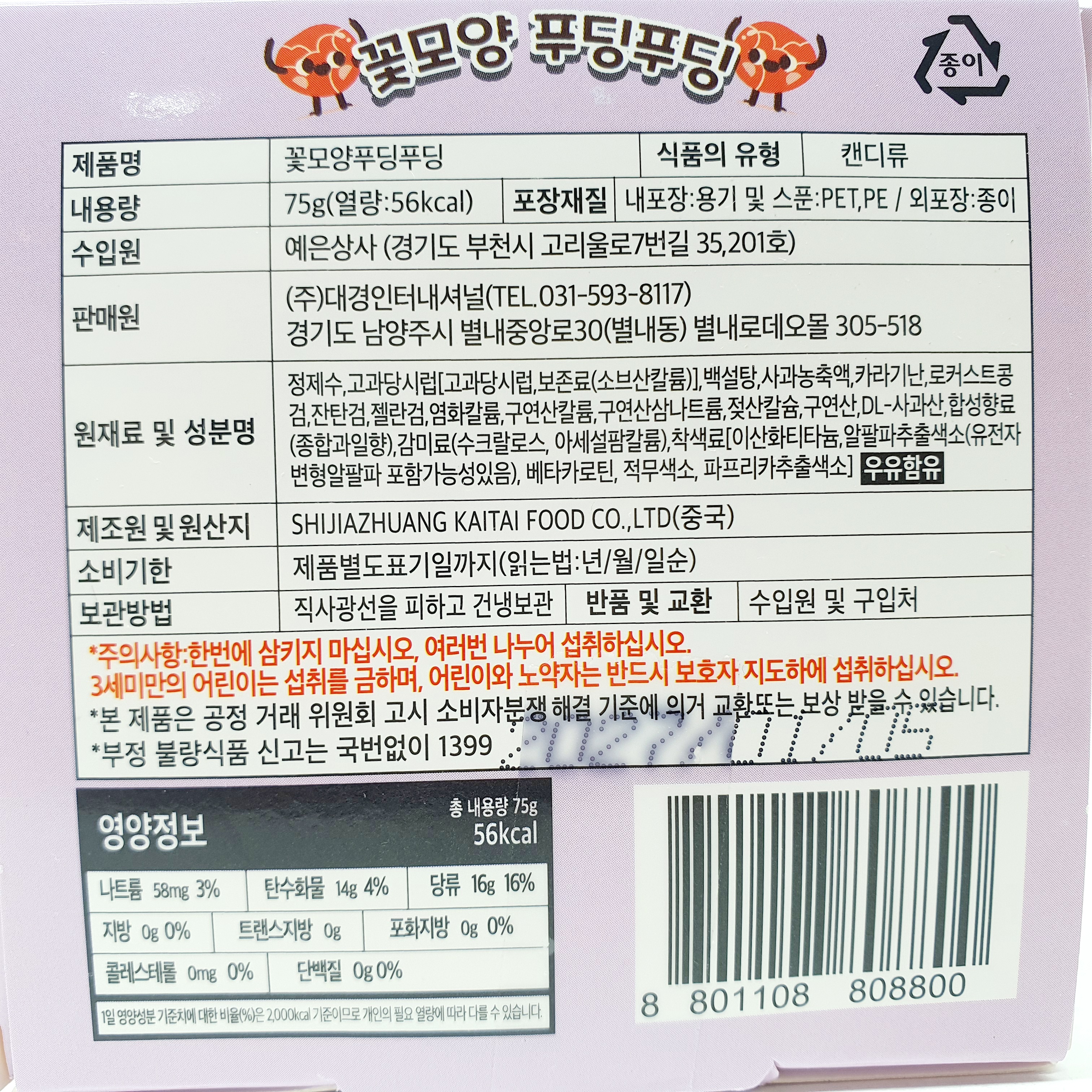 - 원산지/제조원 : SHIJIAZHUANG KAITAI FOOD CO.,LTD (중국)