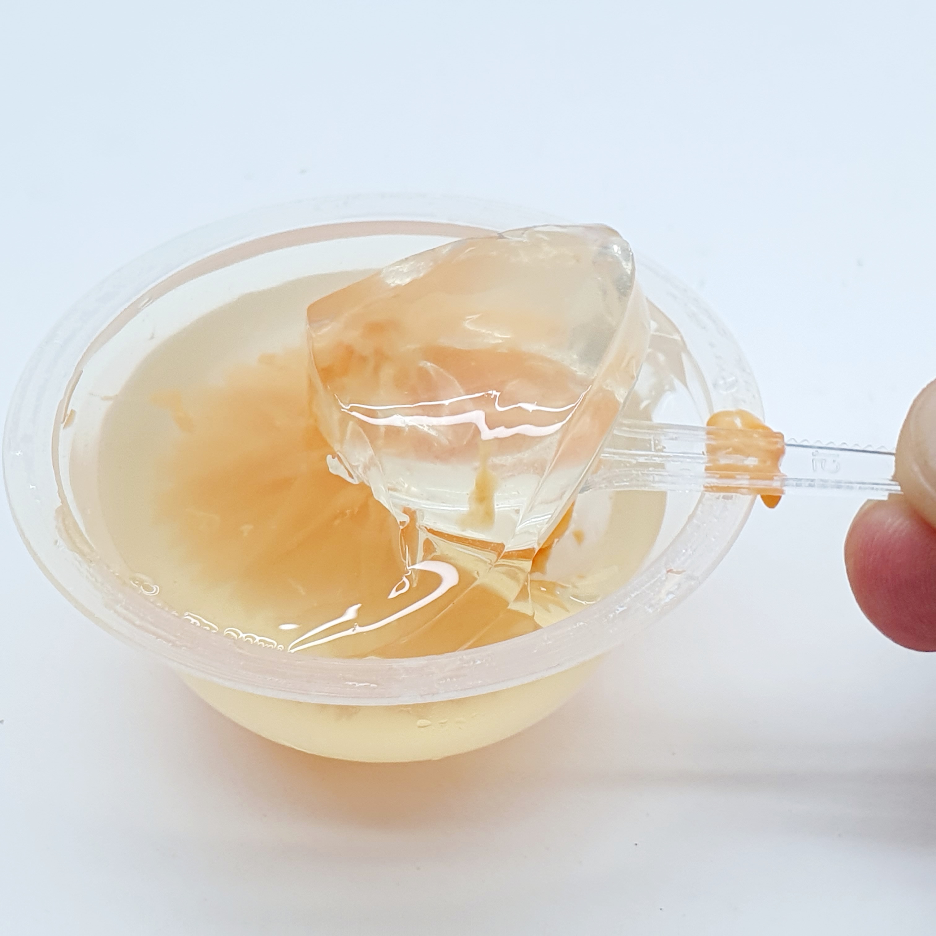 이 제품의 가장 큰 특징은 젤 안에 피어난 꽃 모양이에요. 꽃잎이 굉장히 사실적으로 표현되어 있어서, 마치 투명한 젤리 속에 꽃이 한 송이 담겨 있는 것 같아요. 전시될 때도 일부러 꽃 모양이 보이도록 뒤집어 두는데, 이 덕분에 선물용으로 받으면 기분이 좋아지는 디자인이에요.
