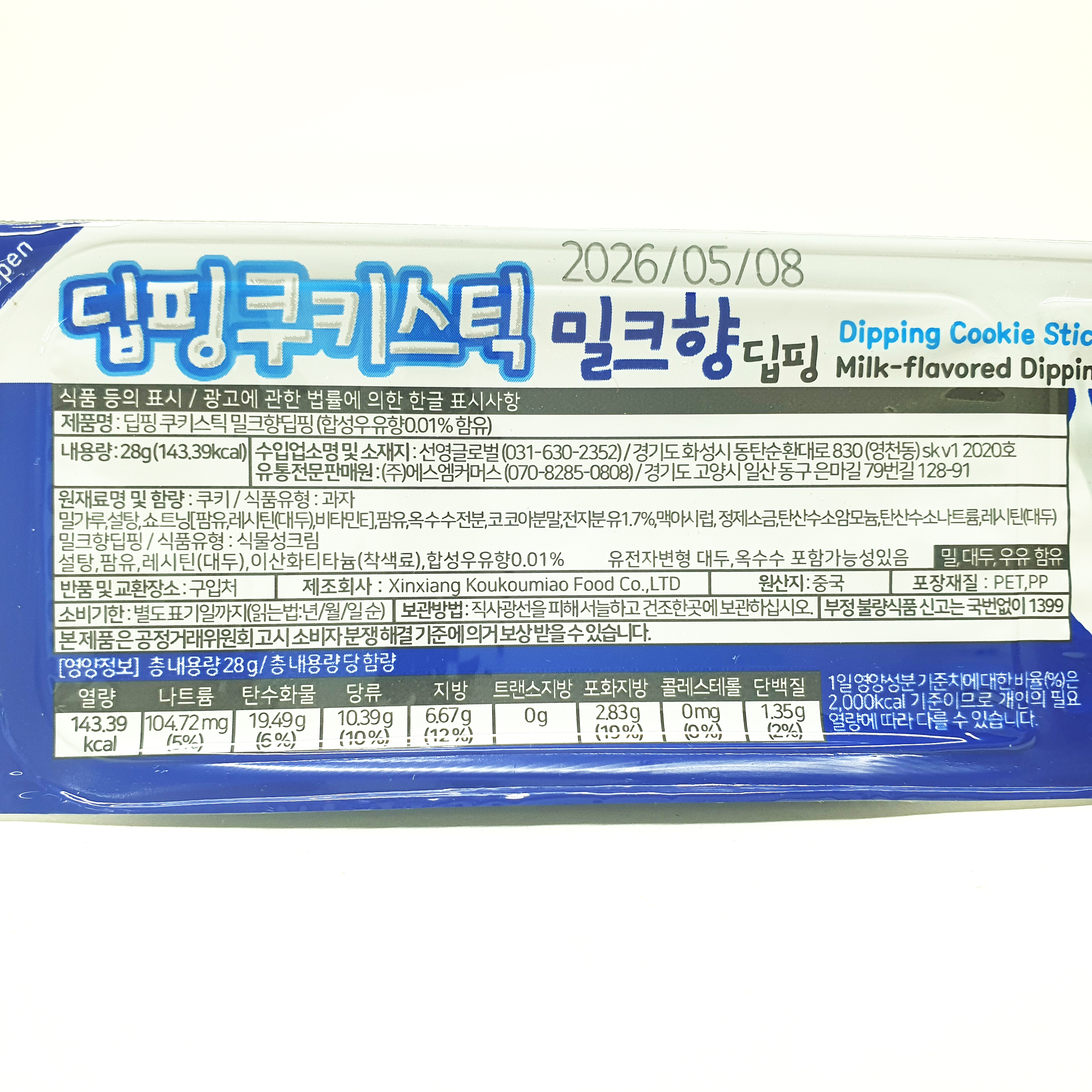 - 제품명 : 딥핑쿠키스틱 밀크향딥핑 (합성우유향 0.01% 함유)