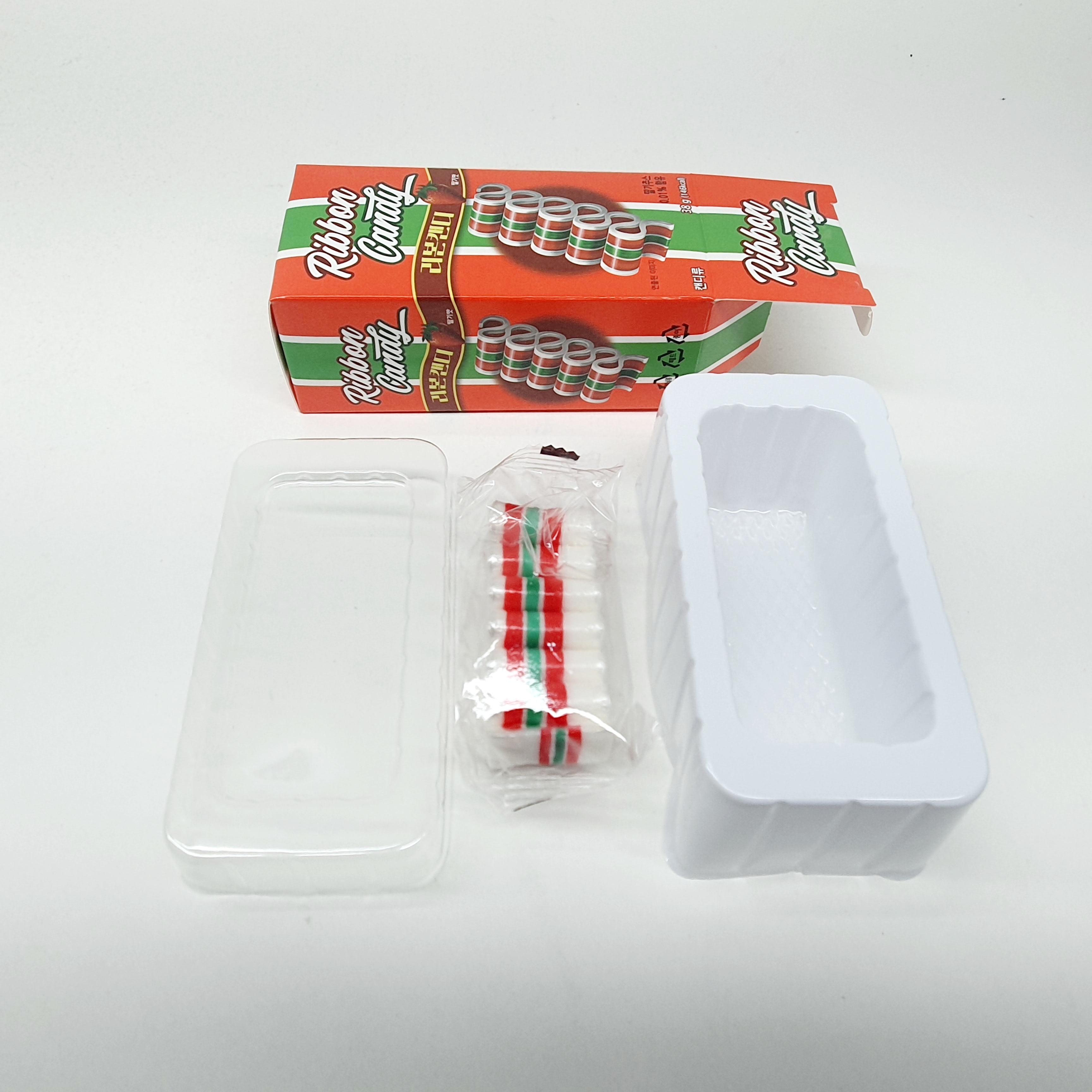 리본캔디를 안전하게 보관할 수 있는 플라스틱 상자가 함께 동봉되어 있어서, 끊어 먹고 보관하시면 되세요~
