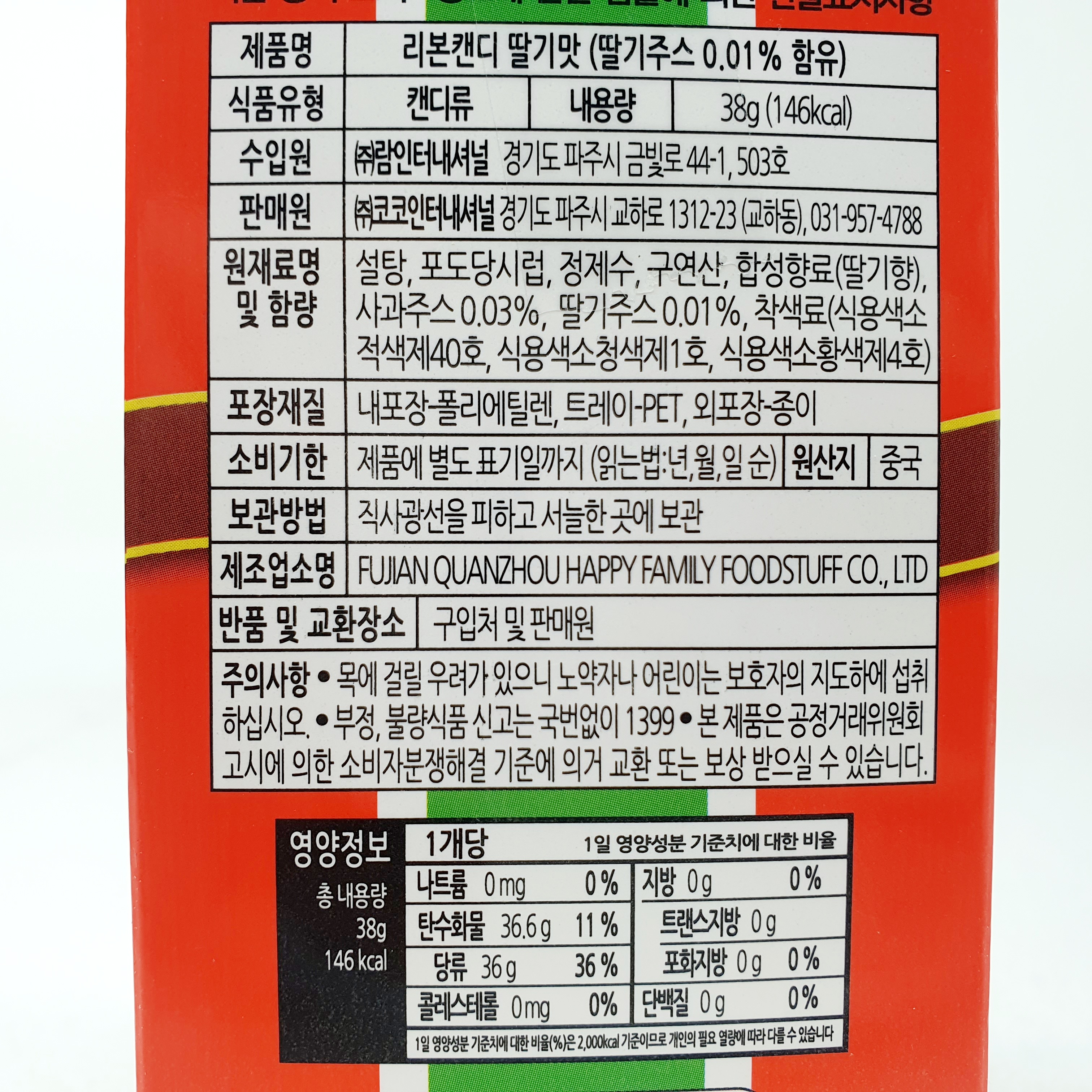 제품명: 리본캔디 딸기맛 (딸기주스 0.01% 함유)