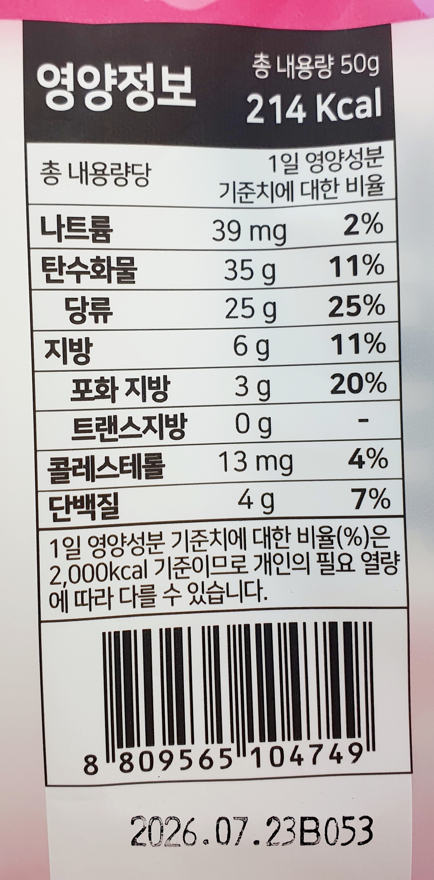 - 내용량: 50g (214 kcal)