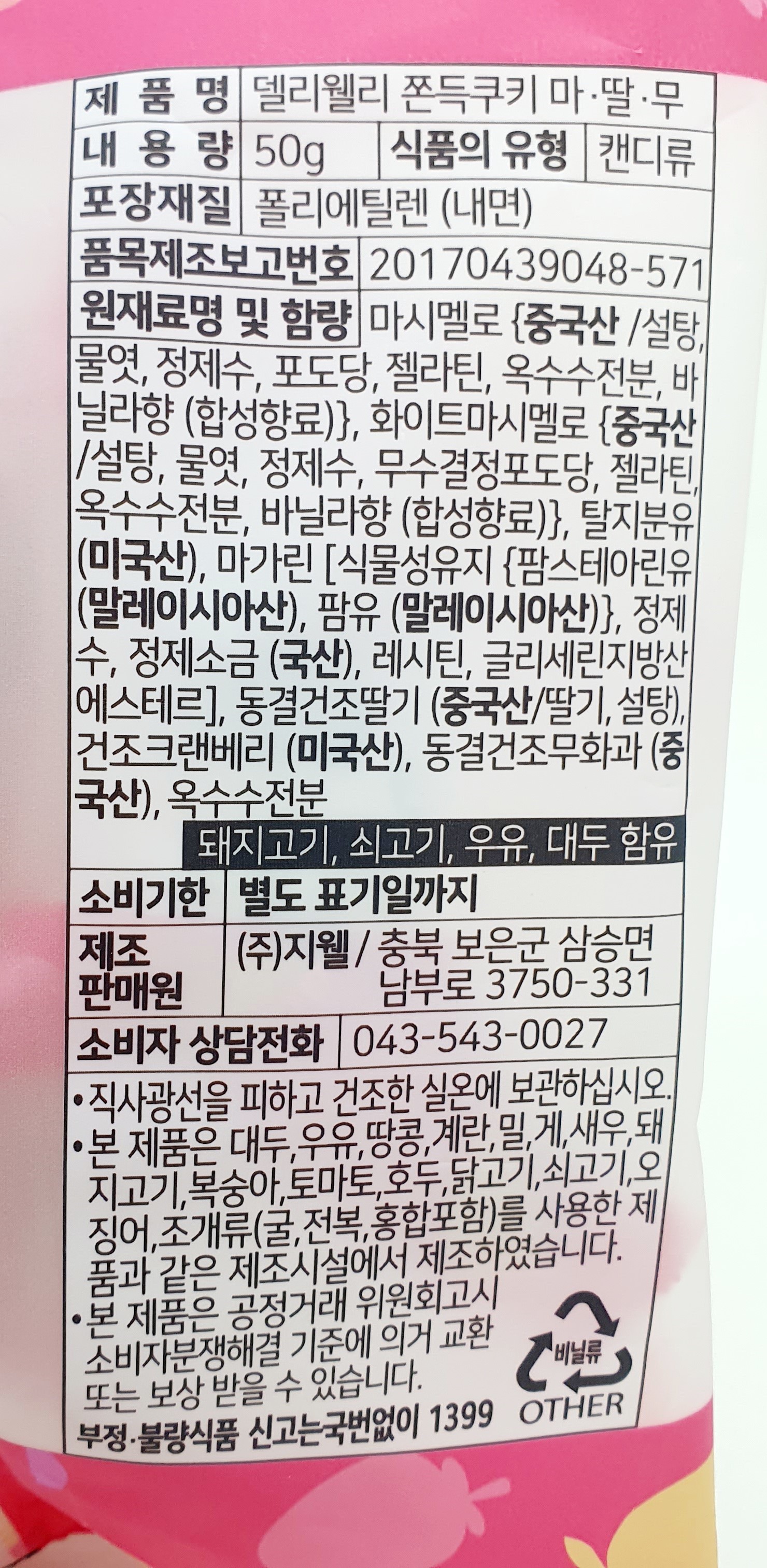 이상 과자도매닷컴의 델리웰리 쫀득쿠키 마·딸·무 소개를 마칩니다.