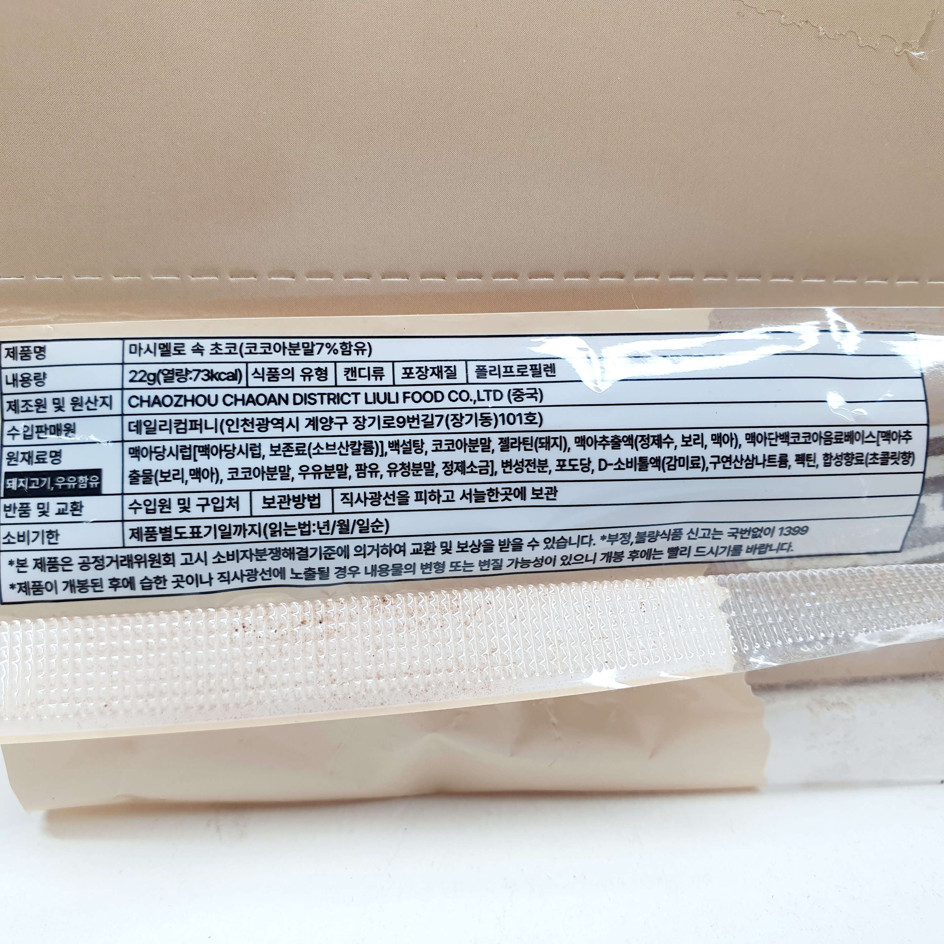 제품명: 마시멜로 속 초코(코코아분말7%함유)