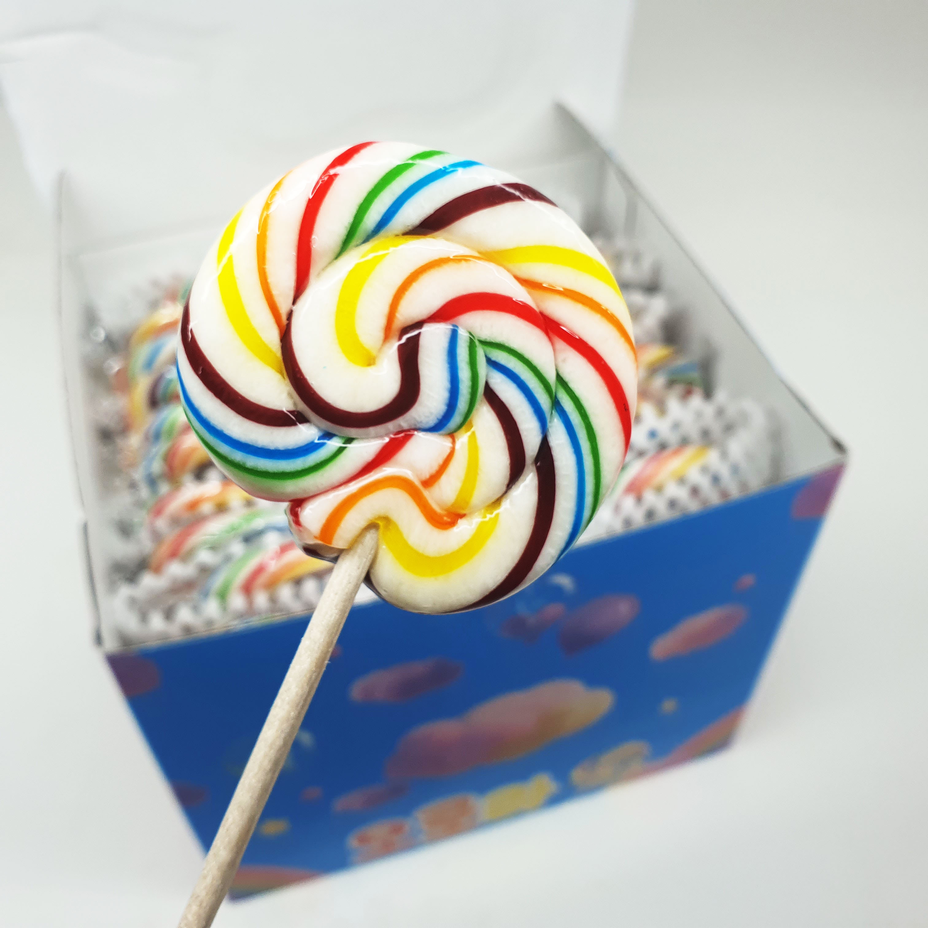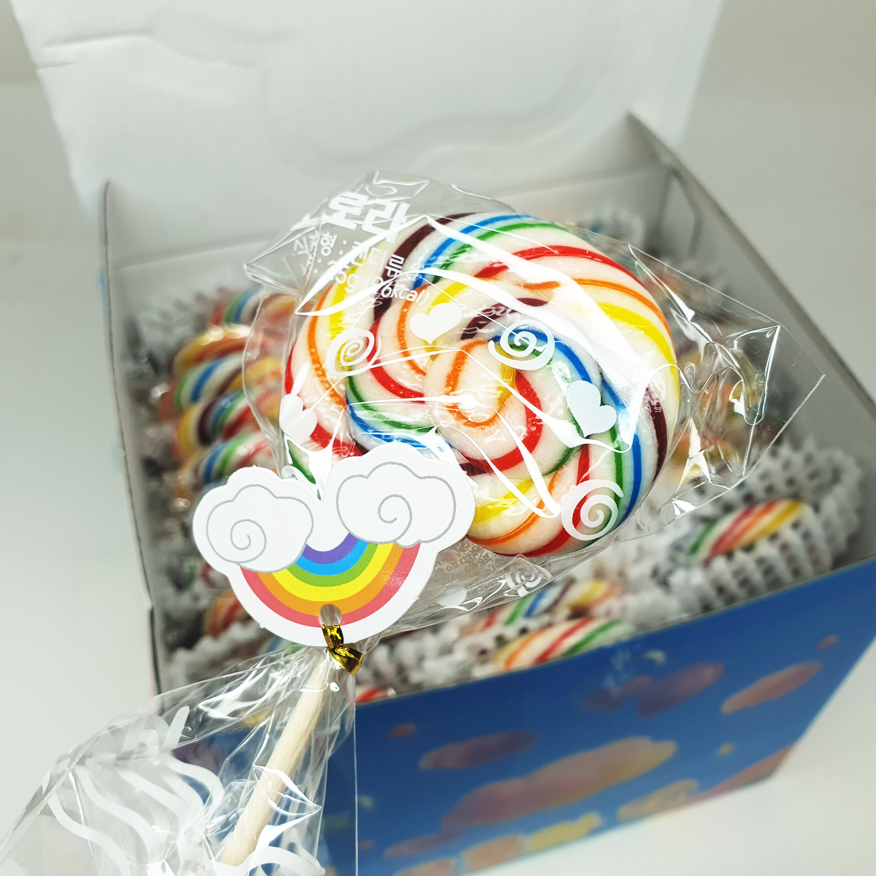 보는 순간 “와, 예쁘다!” 하고 감탄이 절로 나오는 무지개 회오리 사탕이에요.