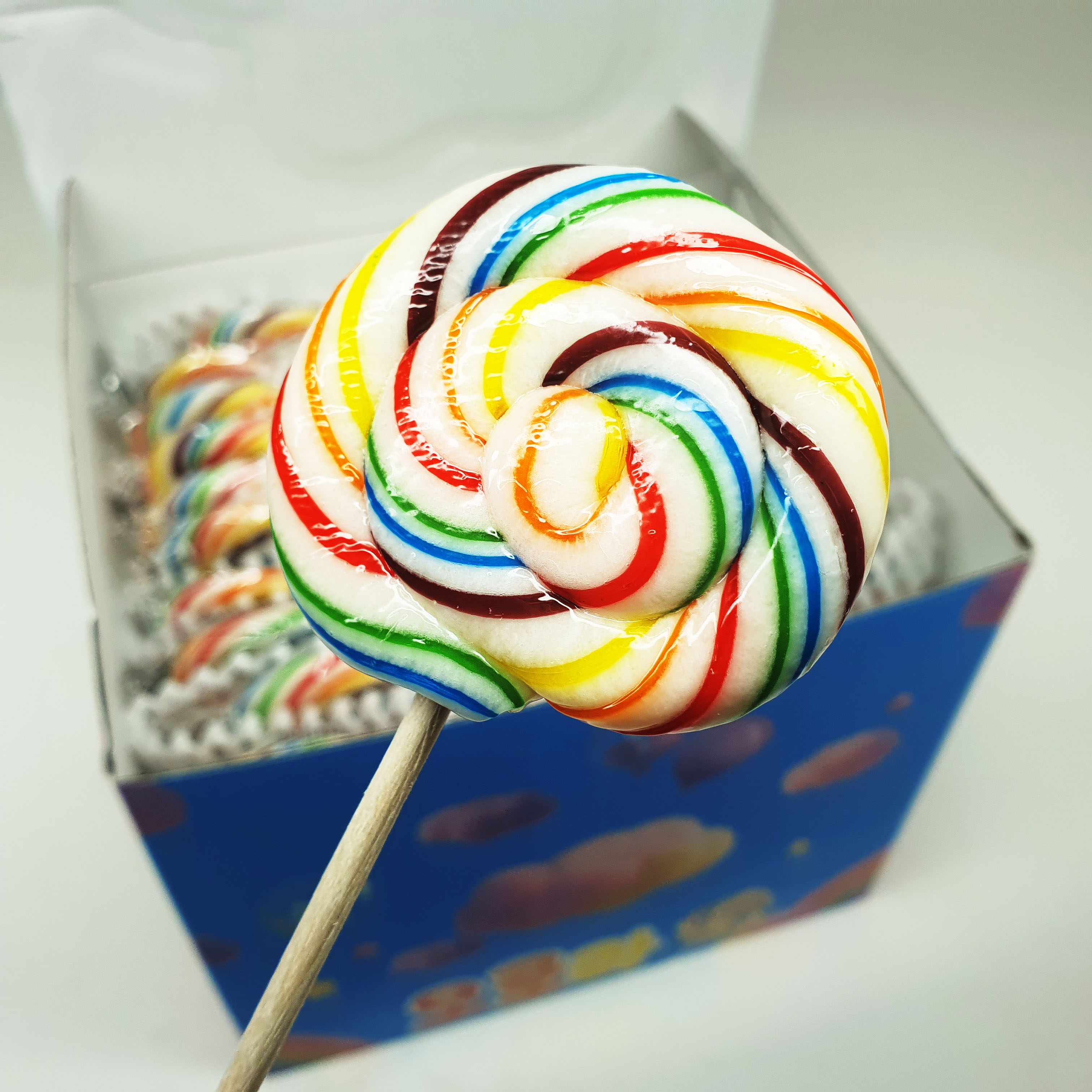 보는 순간 “와, 예쁘다!” 하고 감탄이 절로 나오는 무지개 회오리 사탕이에요.