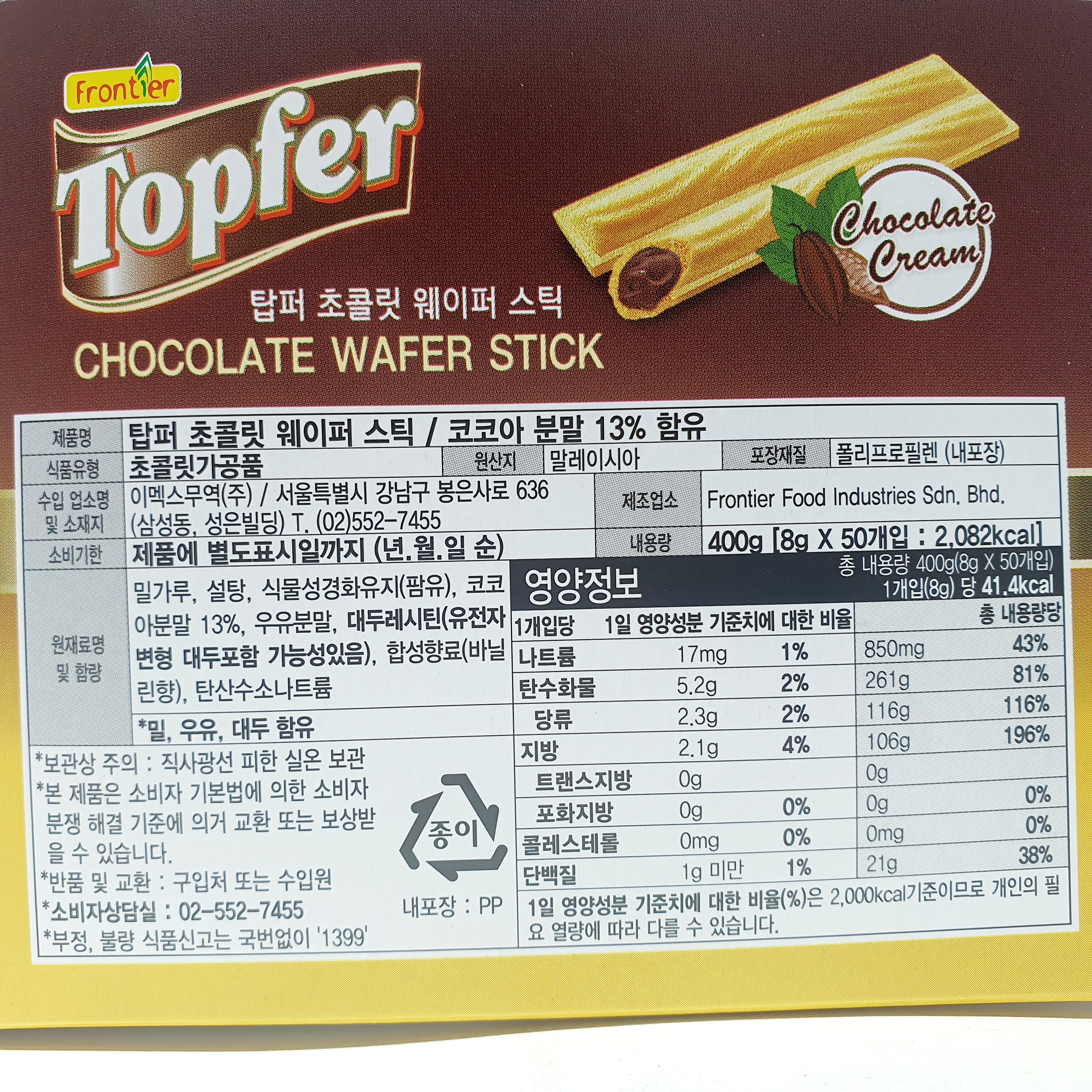 제품명: 탑퍼 초콜릿 웨이퍼 스틱