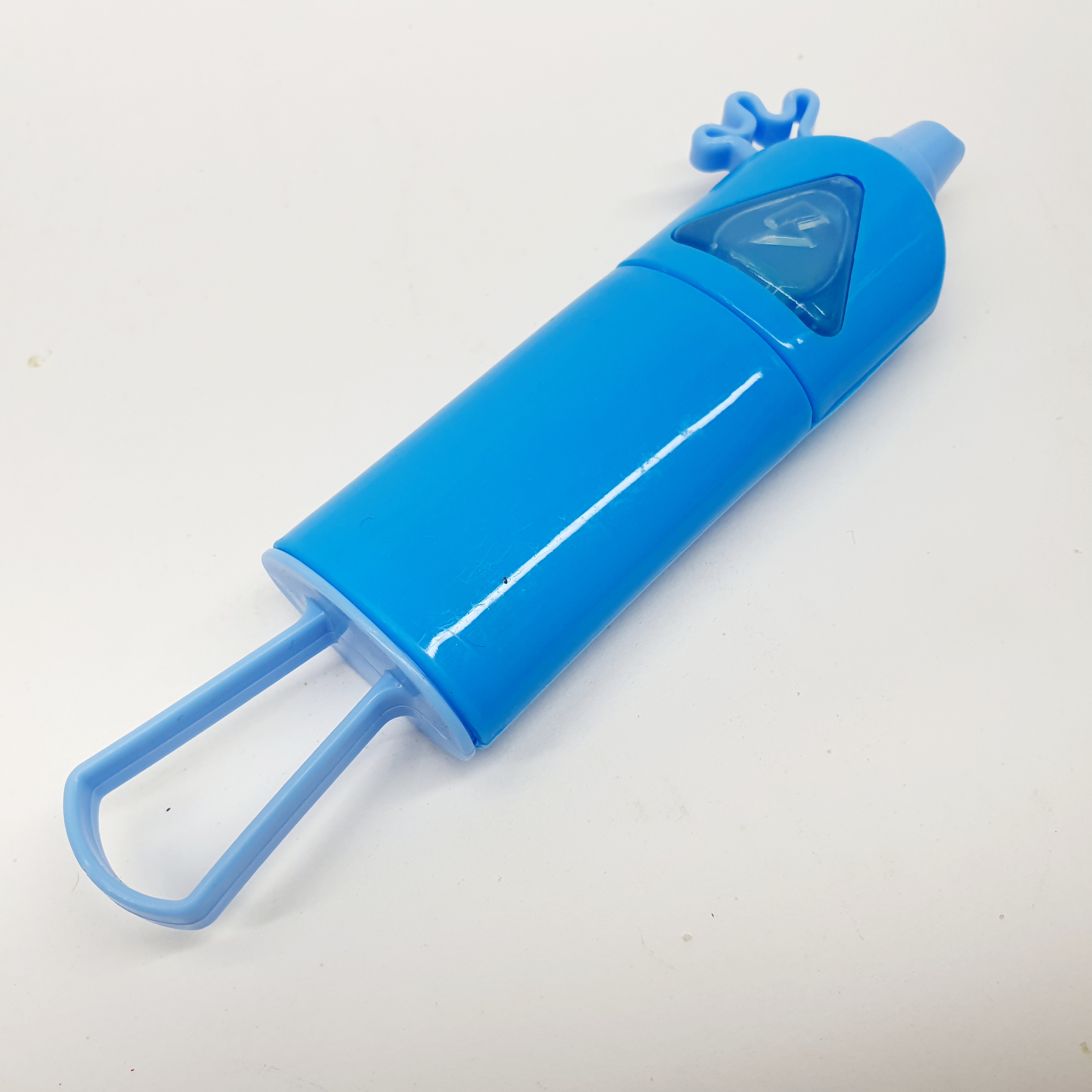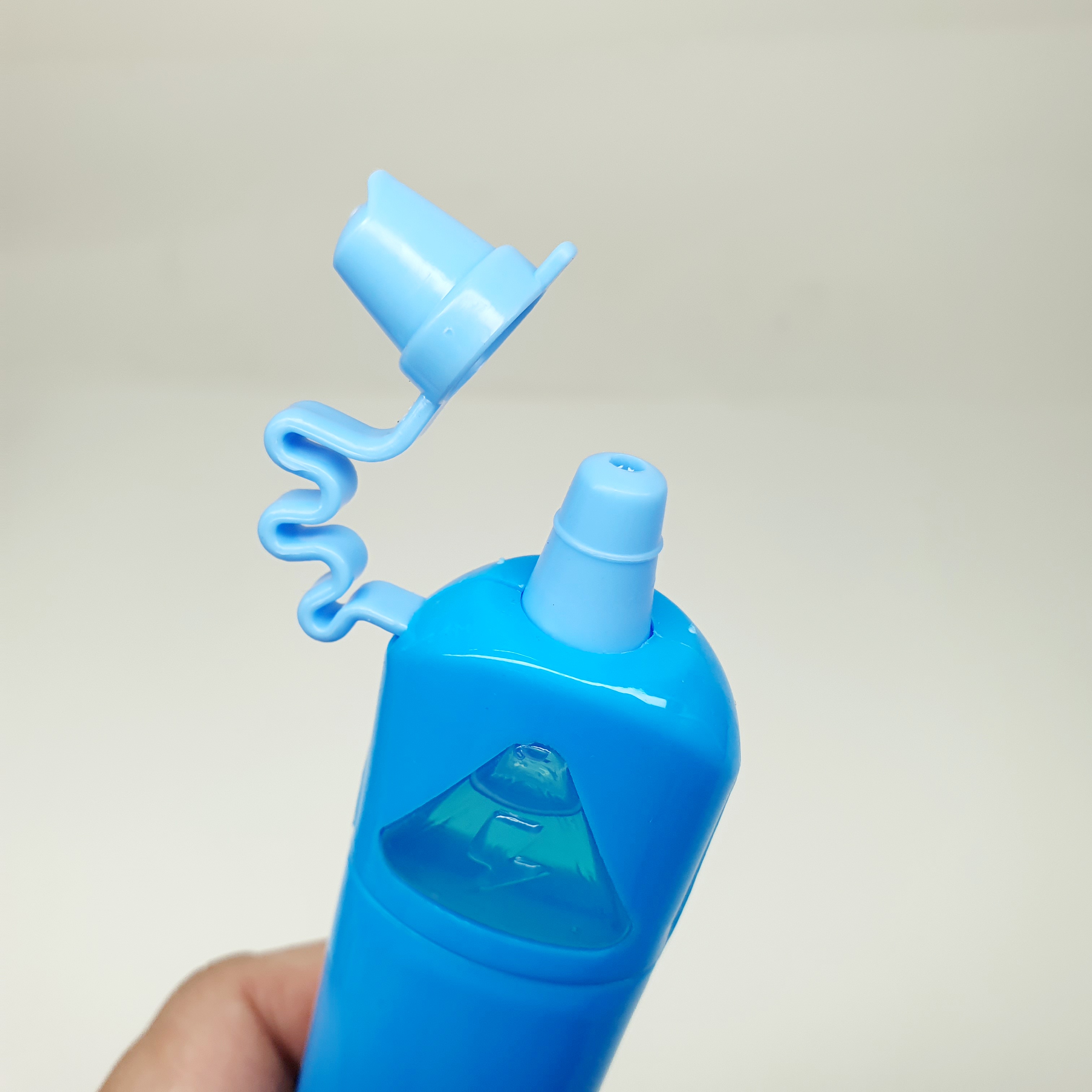 상단에는 물총이나 주사기처럼 생긴 사워액 용기가 달려 있습니다.