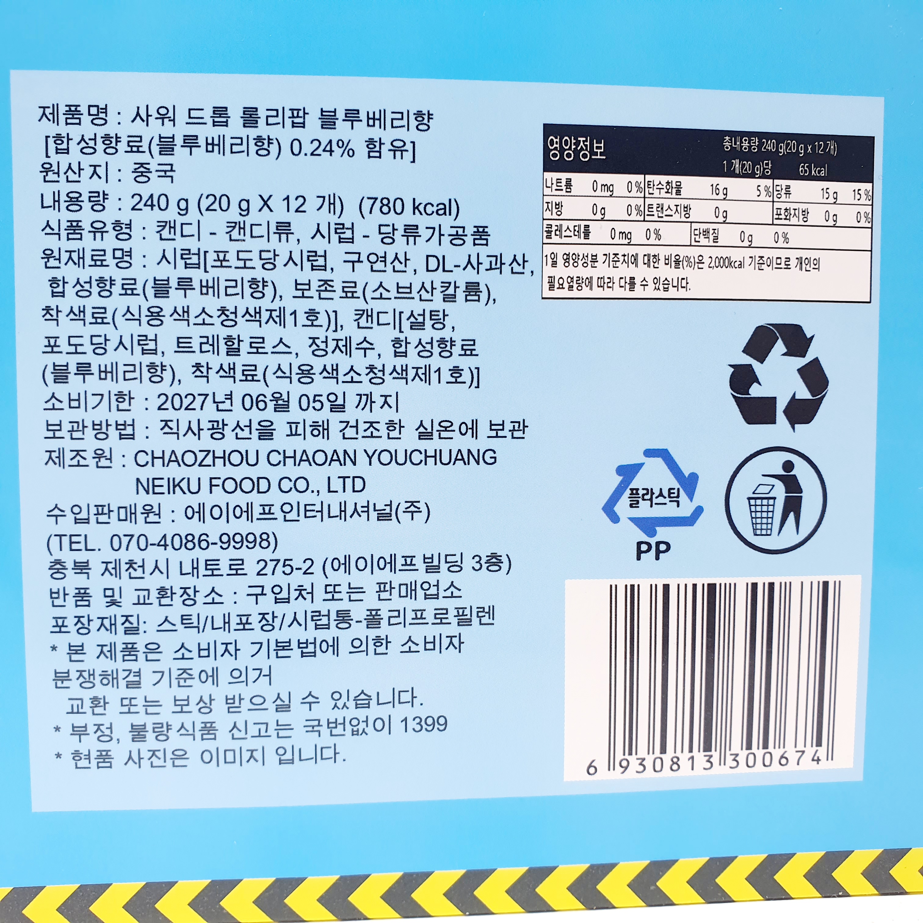 개발하신 분의 의지가 돋보이는 제품 사워 드롭 롤리팝 블루베리향 소개를 합니다.