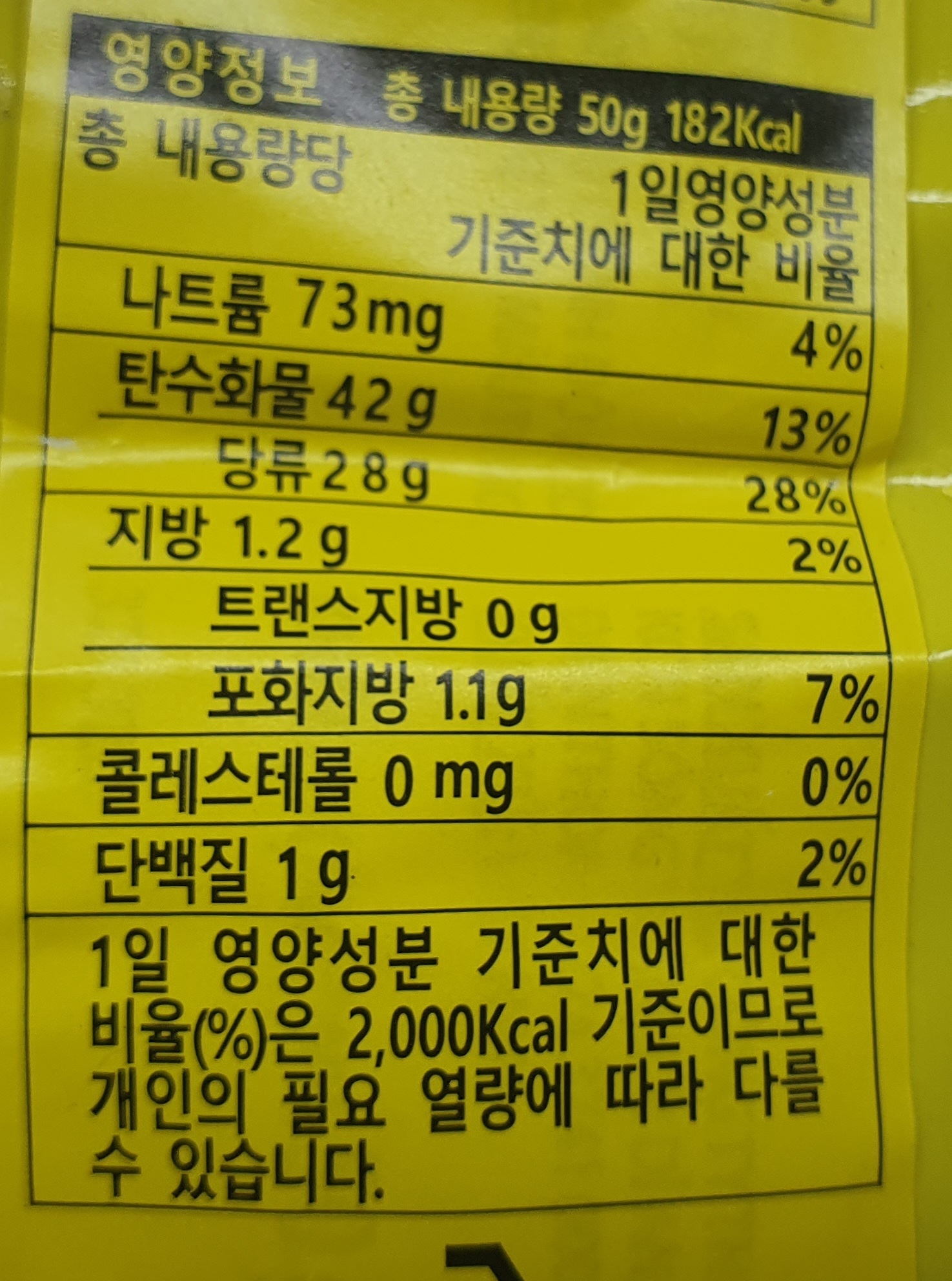 1일 영양성분 기준치(2,000kcal)에 따라 달라질 수 있습니다.