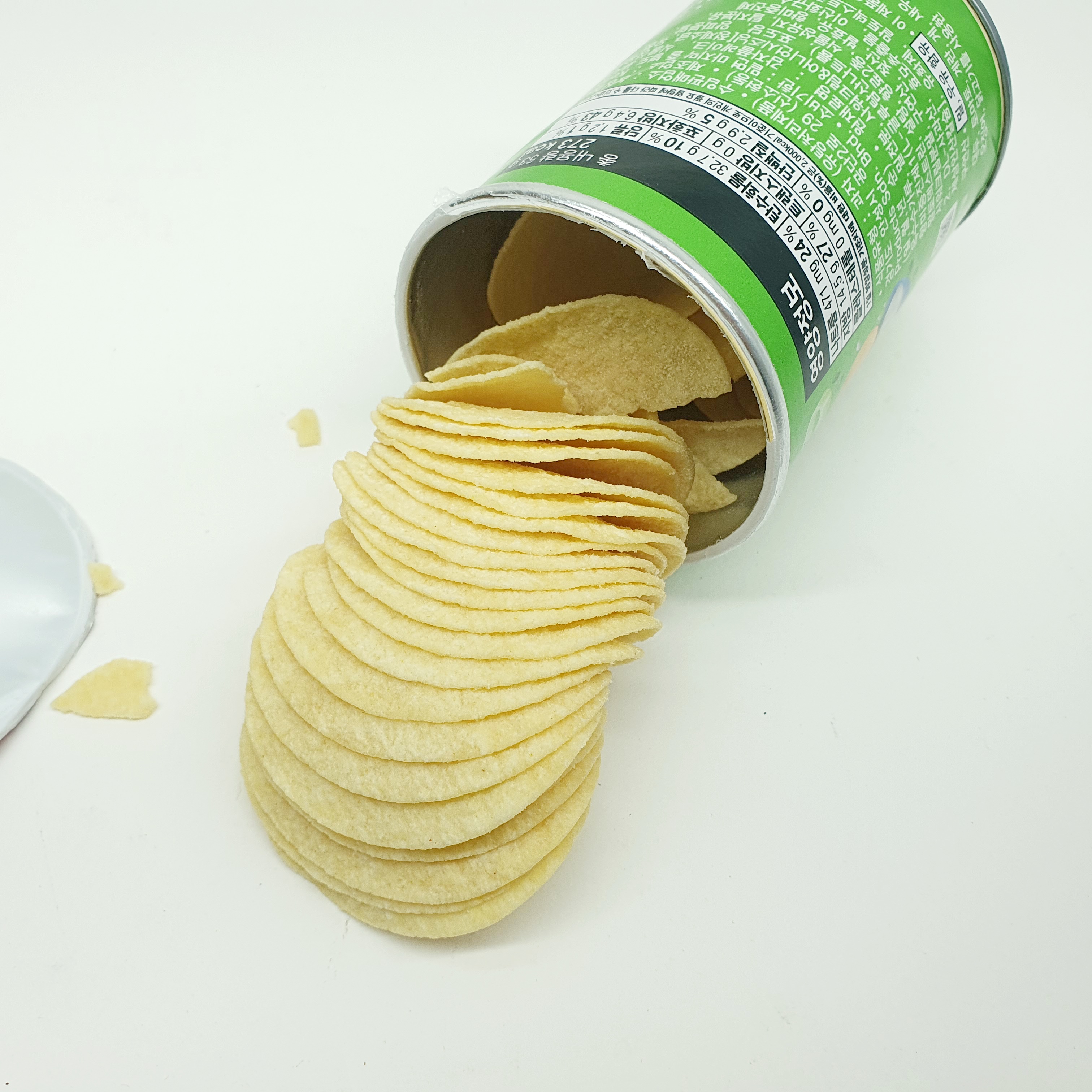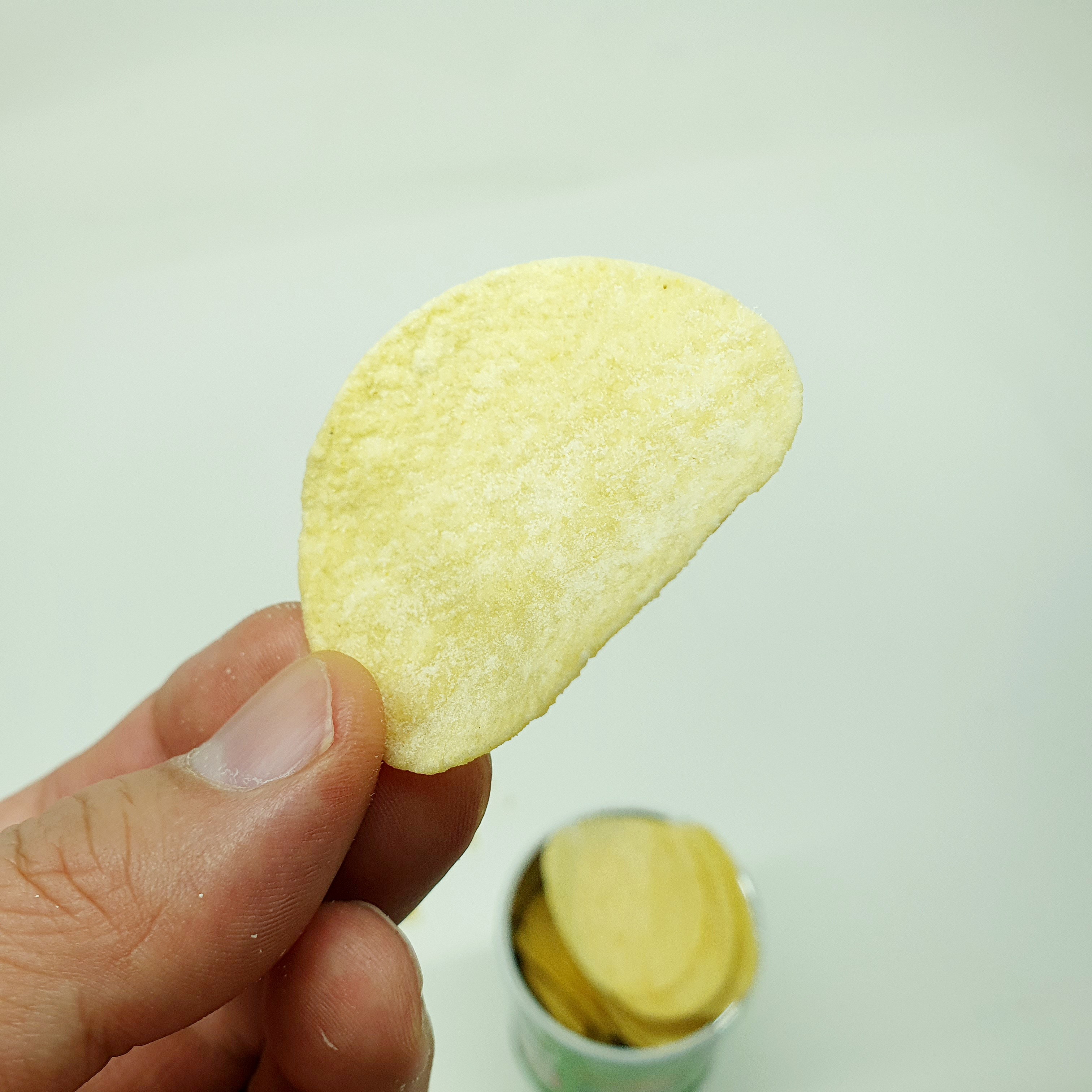 기름에 바삭하게 튀겨낸 감자칩은 입안에서 바삭하게 부서지며, 처음부터 끝까지 균일한 얇기와 식감을 유지해줘요. 프링글스 특유의 식감이죠.