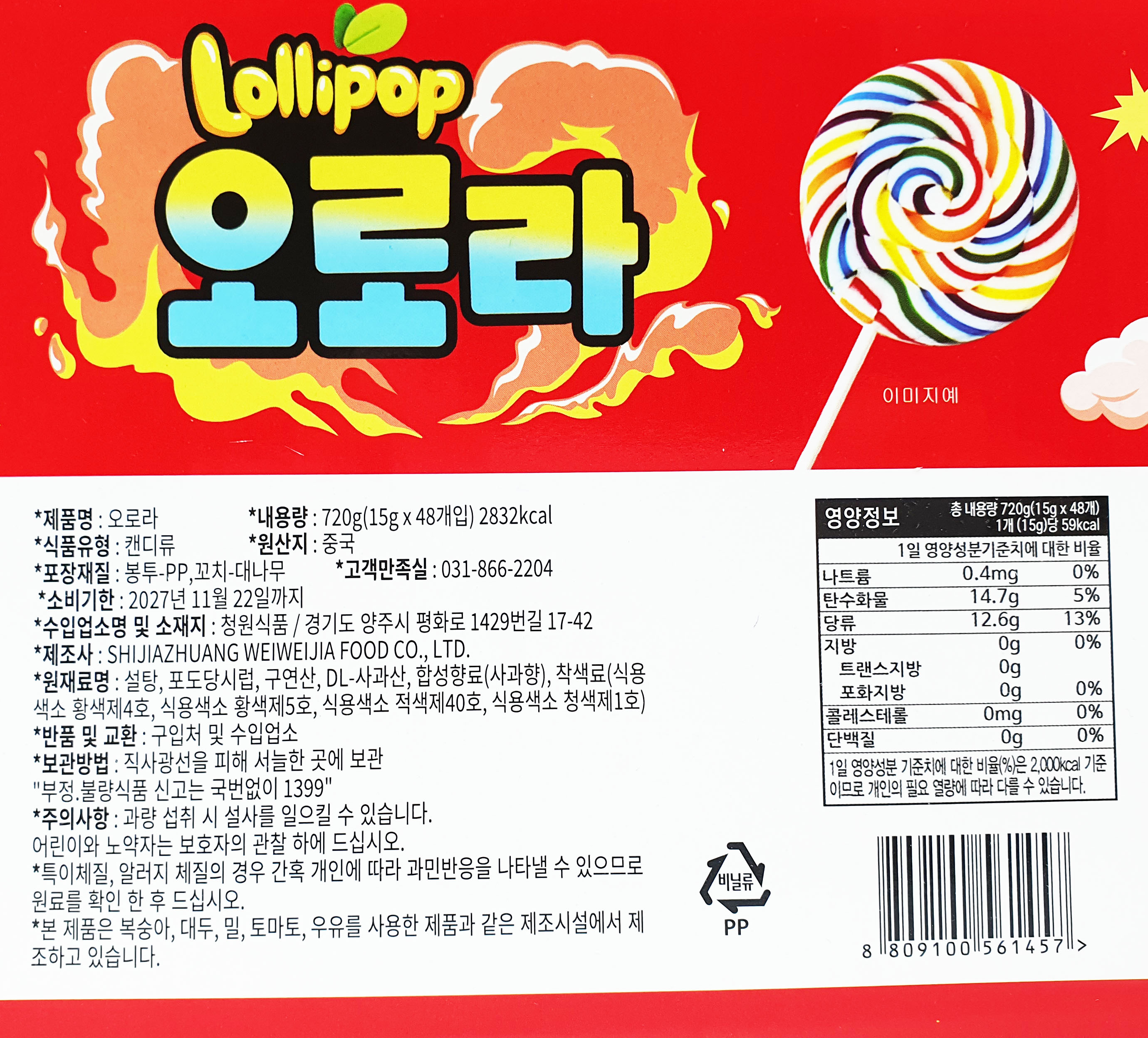 이상 과자도매닷컴의 오로로 롤리팝 캔디소개를 마칩니다.