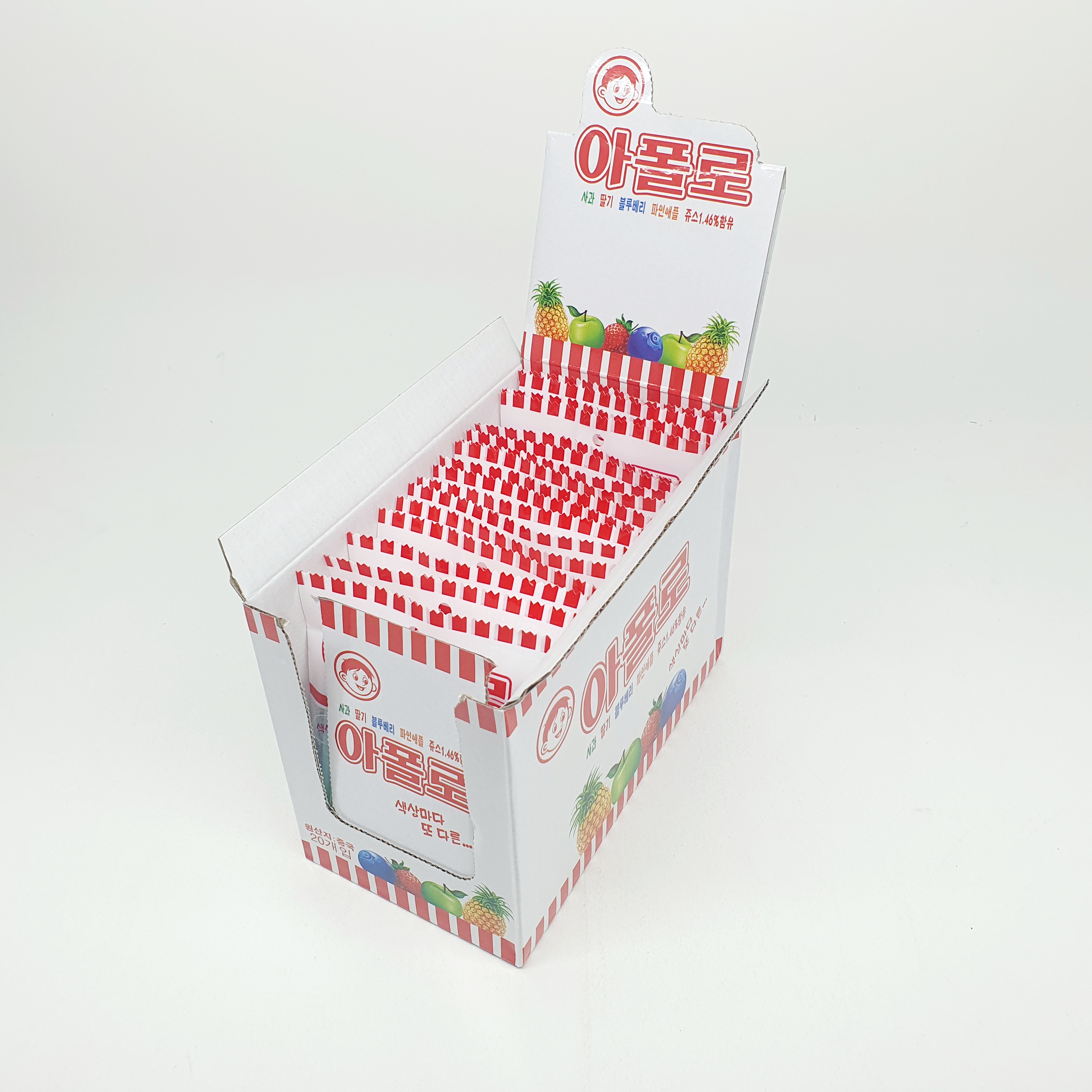 아폴로를 진열하여 개별로 판매할 수 있도록 박스에 점선으로 커팅되어 있습니다.