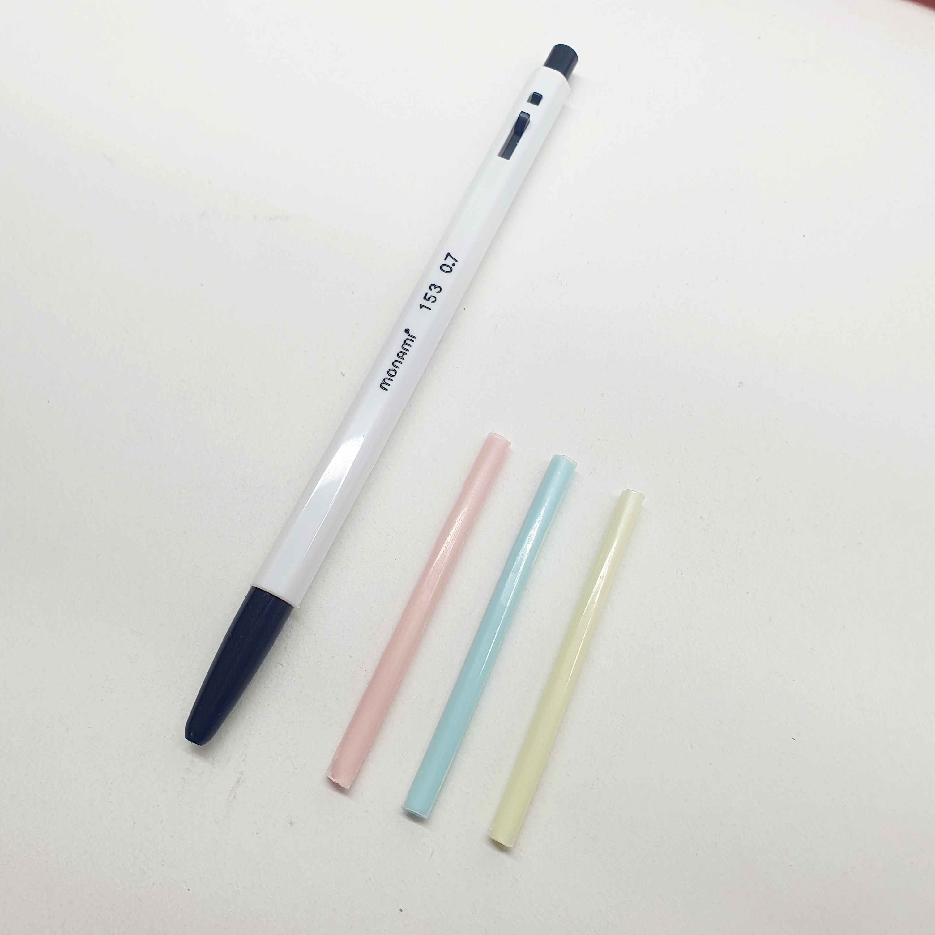 빨대는 폴리에틸렌으로 제조되어 인체에 무해하며, 빨대를 깨물면 맛있는 캔디 형태의 고형분이 입안에 녹아내려