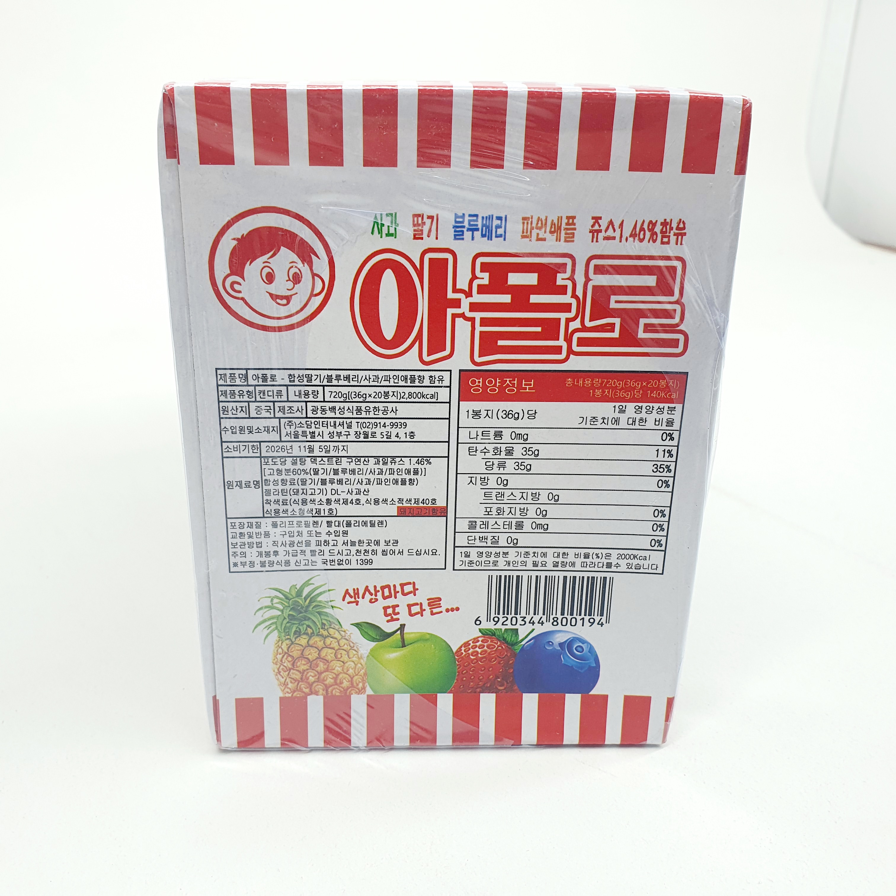 아폴로 원산지는 중국이며 제조사는 광동백성식품유한공사 입니다.