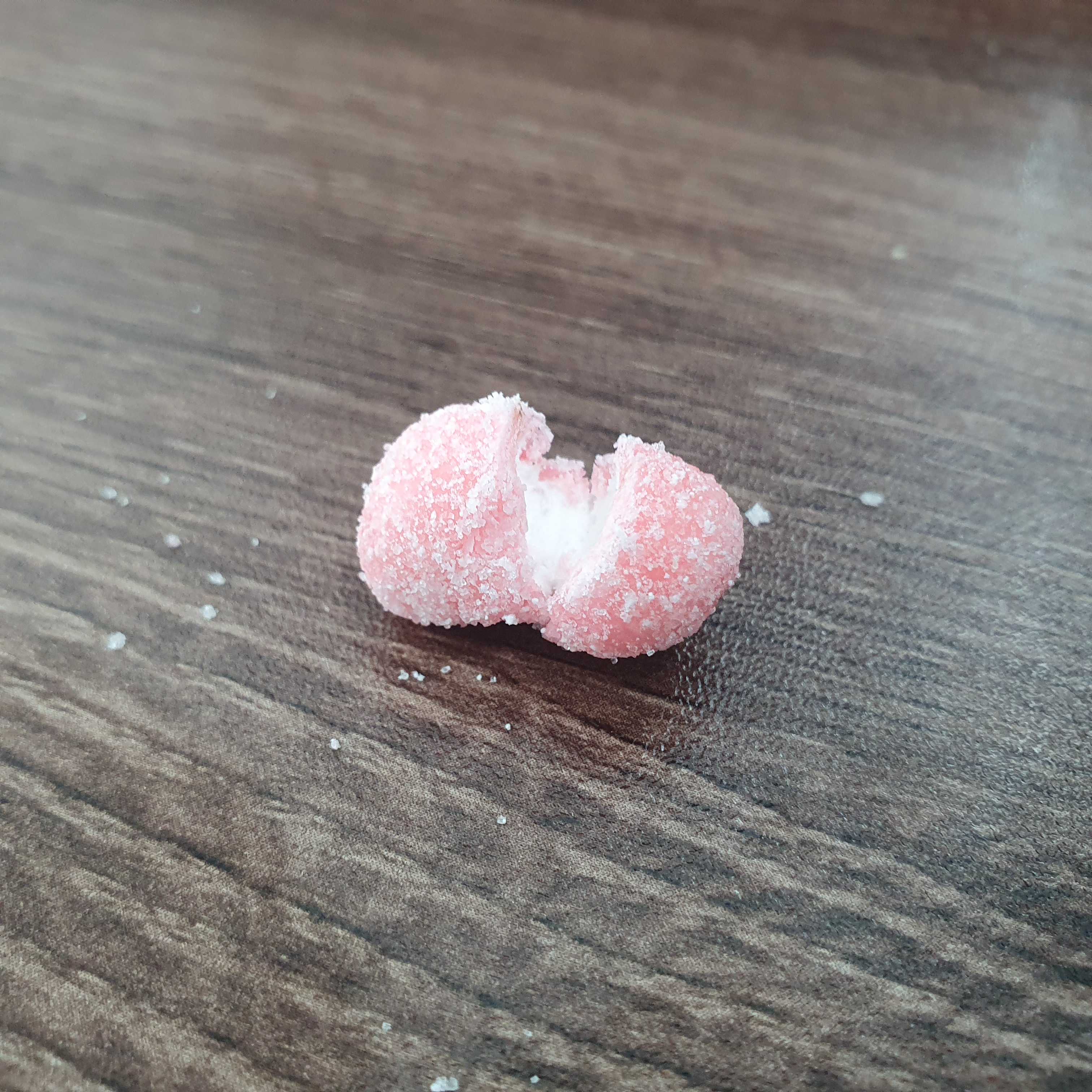 한 입 넣으면 새콤한 과일맛이 톡 하고 퍼지고, 겉에 뿌려진 하얀 설탕 가루 덕분에