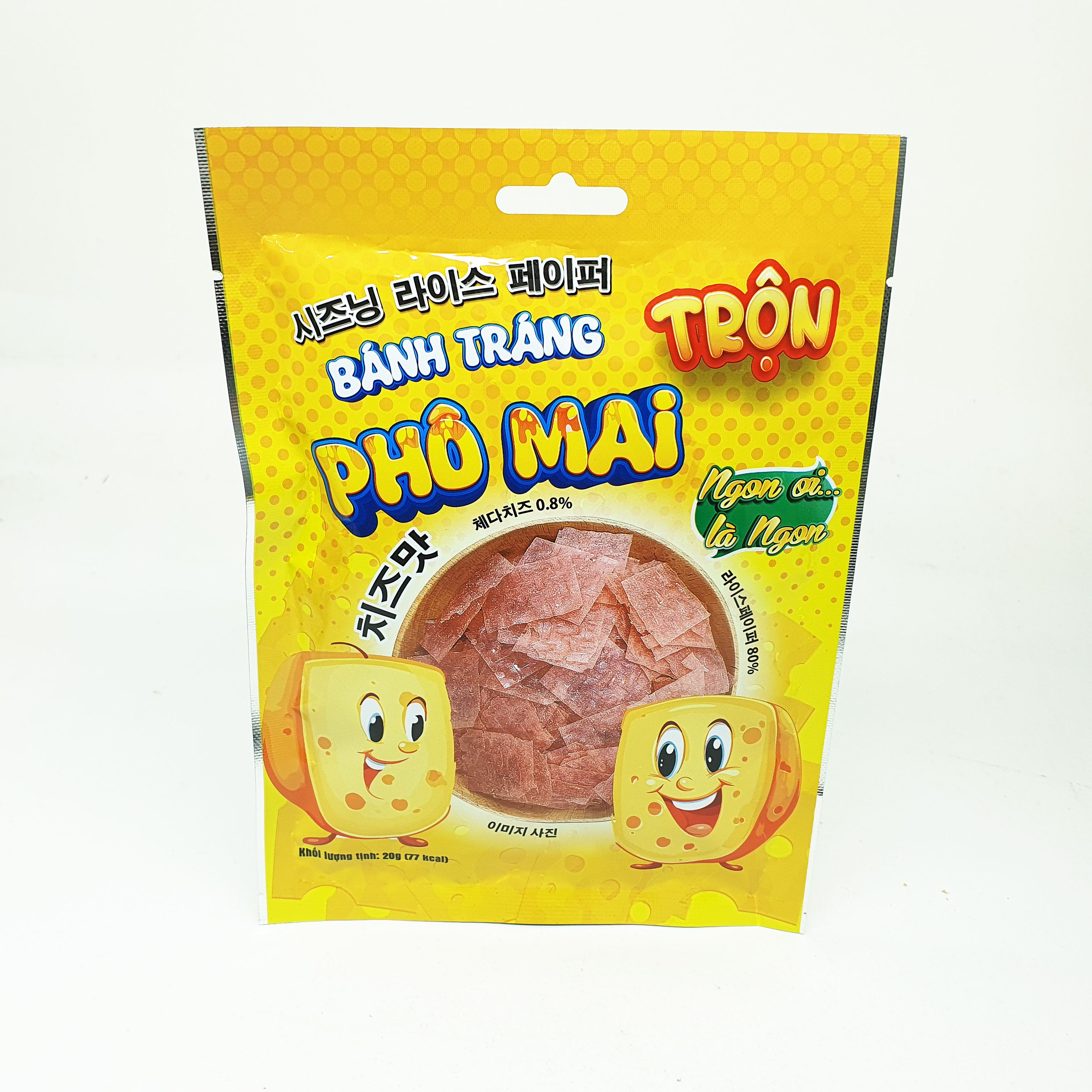 노란 바탕 포장에 치즈 캐릭터와 라이스페이퍼가 잘 연출되어 있어서