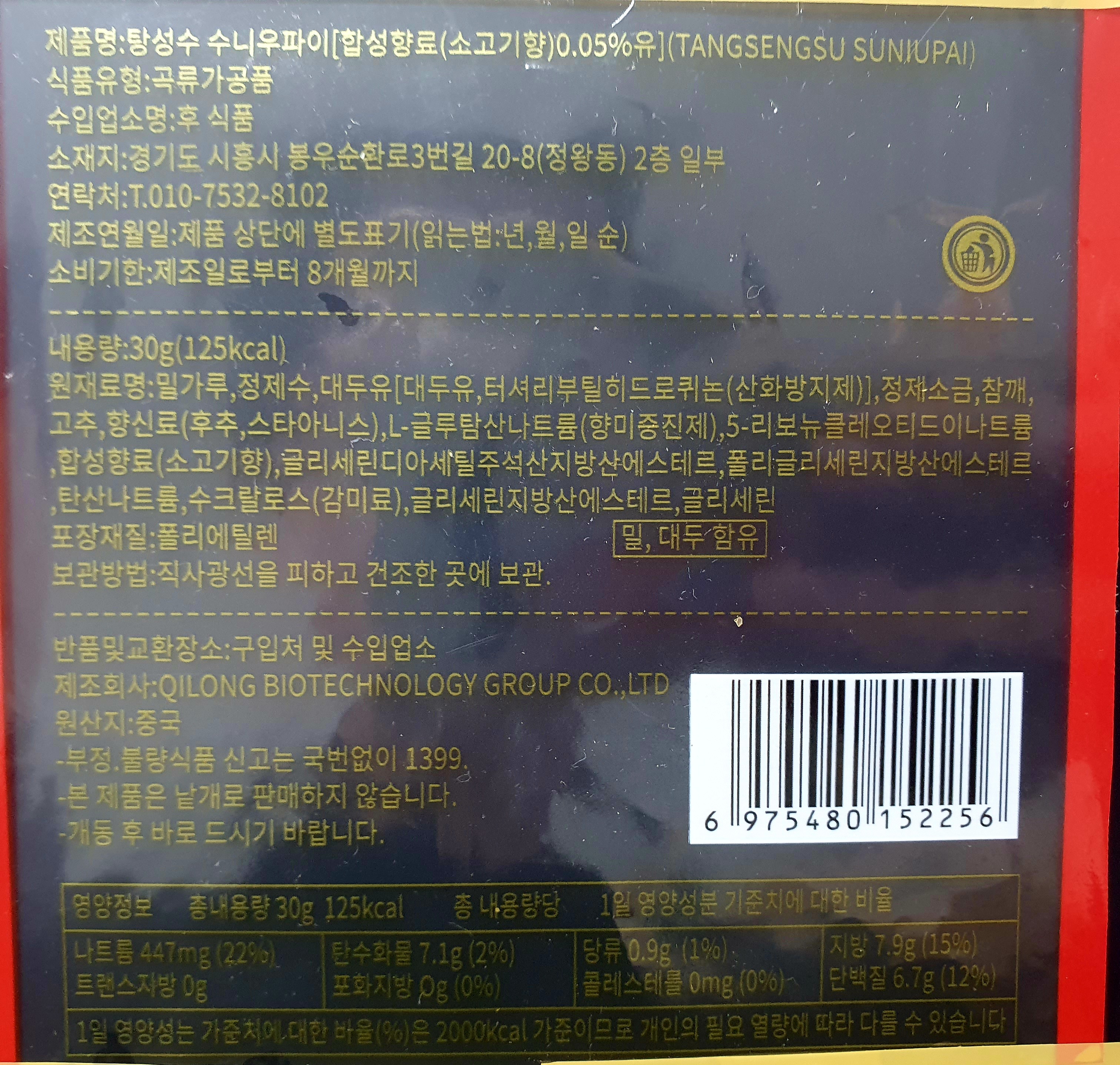 - 제품명: 탕성수 수니우파이 (TANGSENGSU SUNYUPAI)