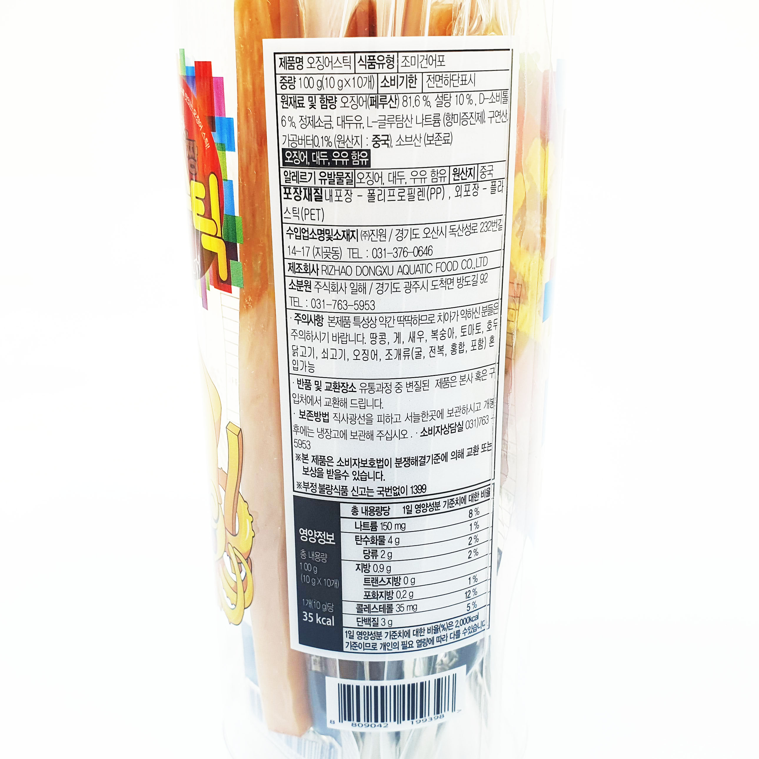오징어스틱은 이름 그대로 스틱형으로 먹기 편하고, 깔끔한 오징어 간식이에요.