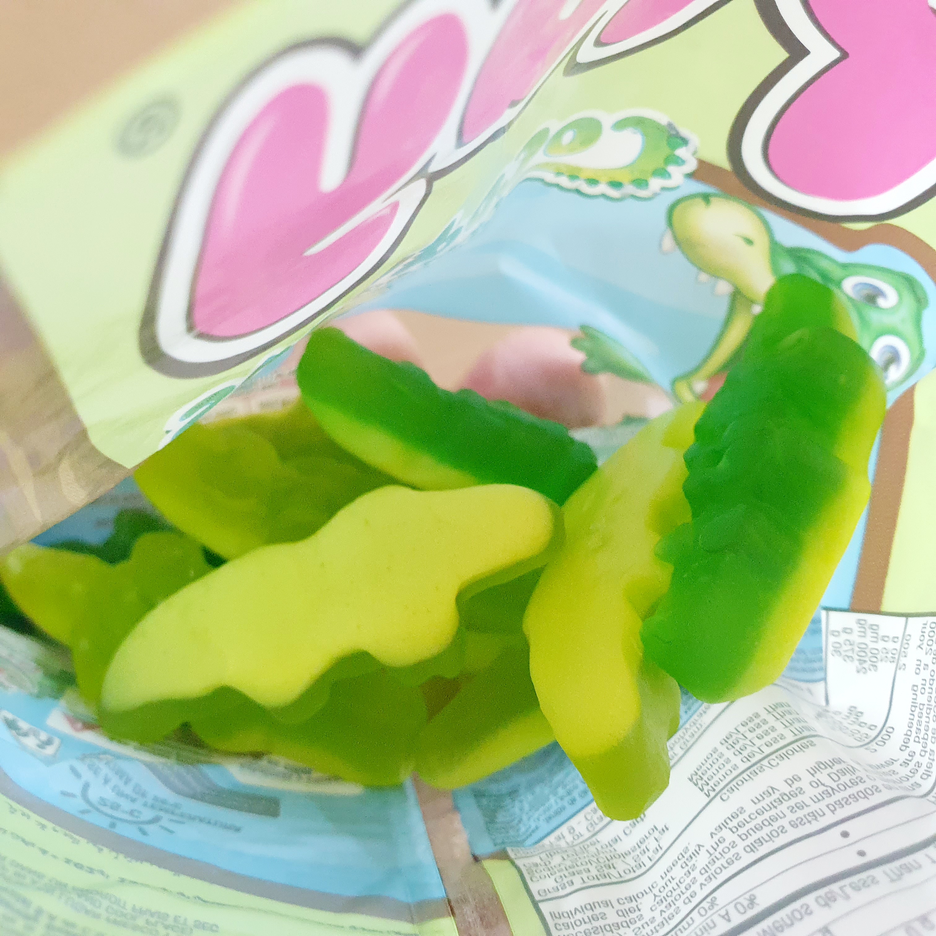 이 젤리는 마치 악어새끼 같기도 하고 작은 악어 한 마리를 손에 쥔 듯한 느낌이에요.