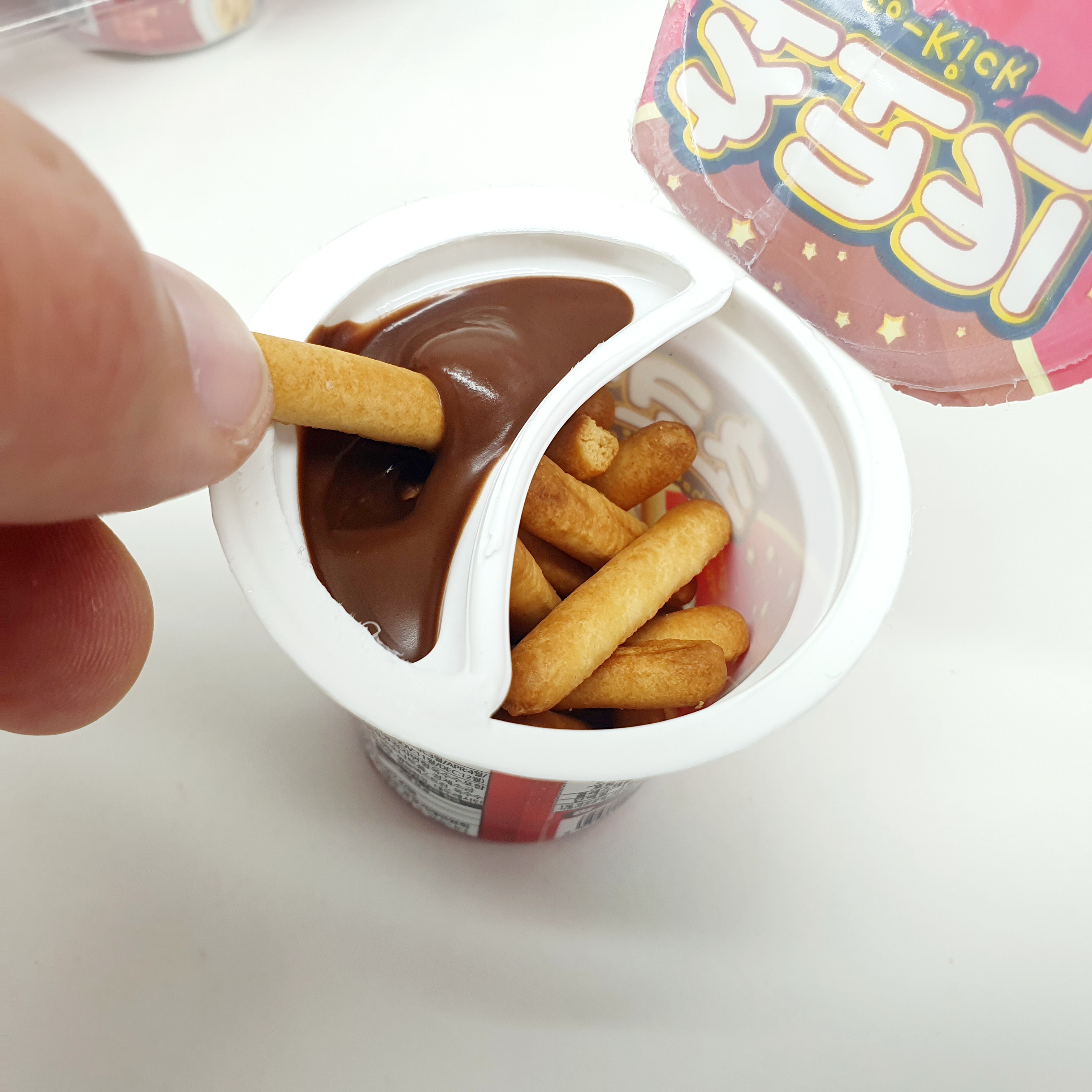 초코킥은 찍어 먹는 행위 자체가 맛에 재미를 더해주는 과자예요.