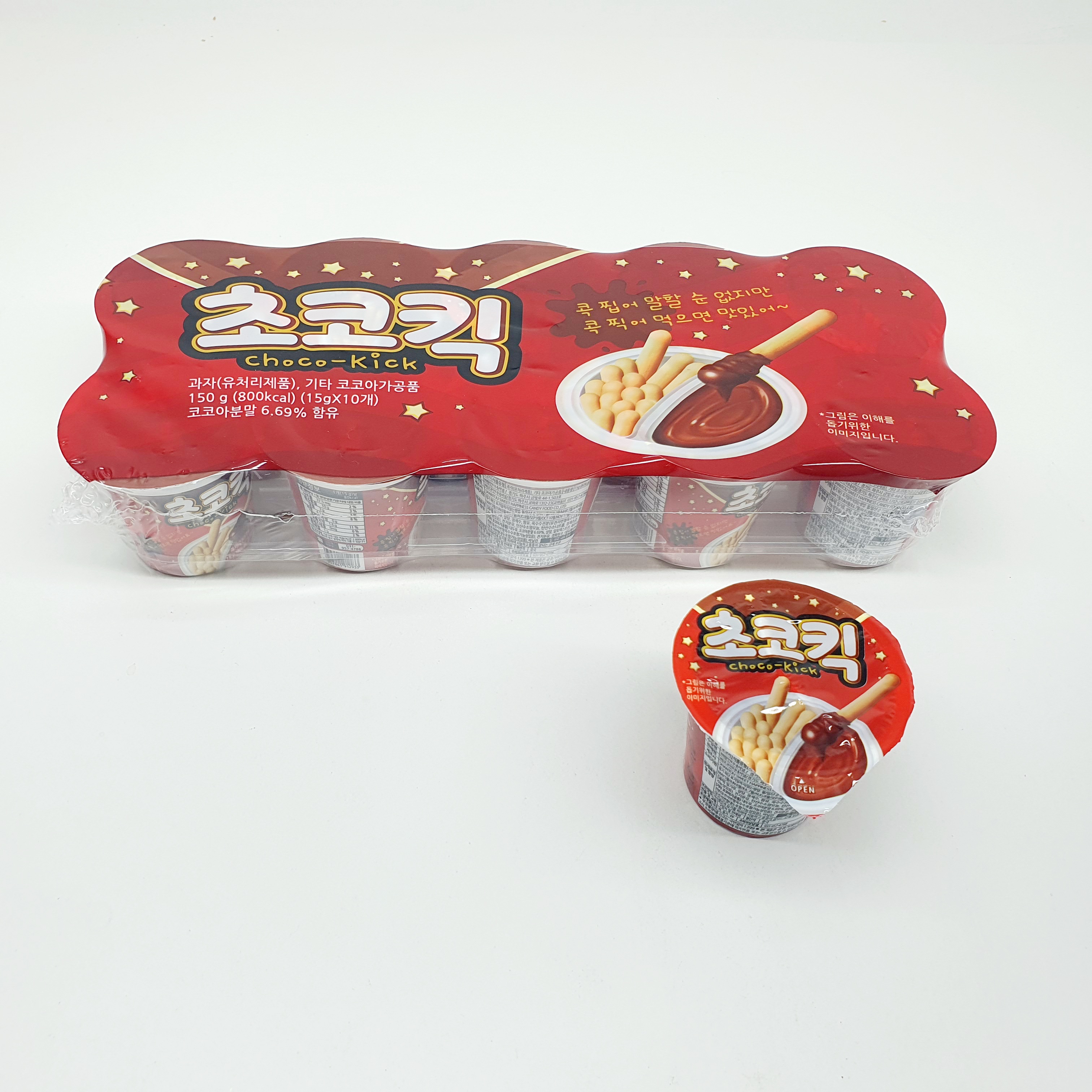 초코킥은 찍어 먹는 행위 자체가 맛에 재미를 더해주는 과자예요.