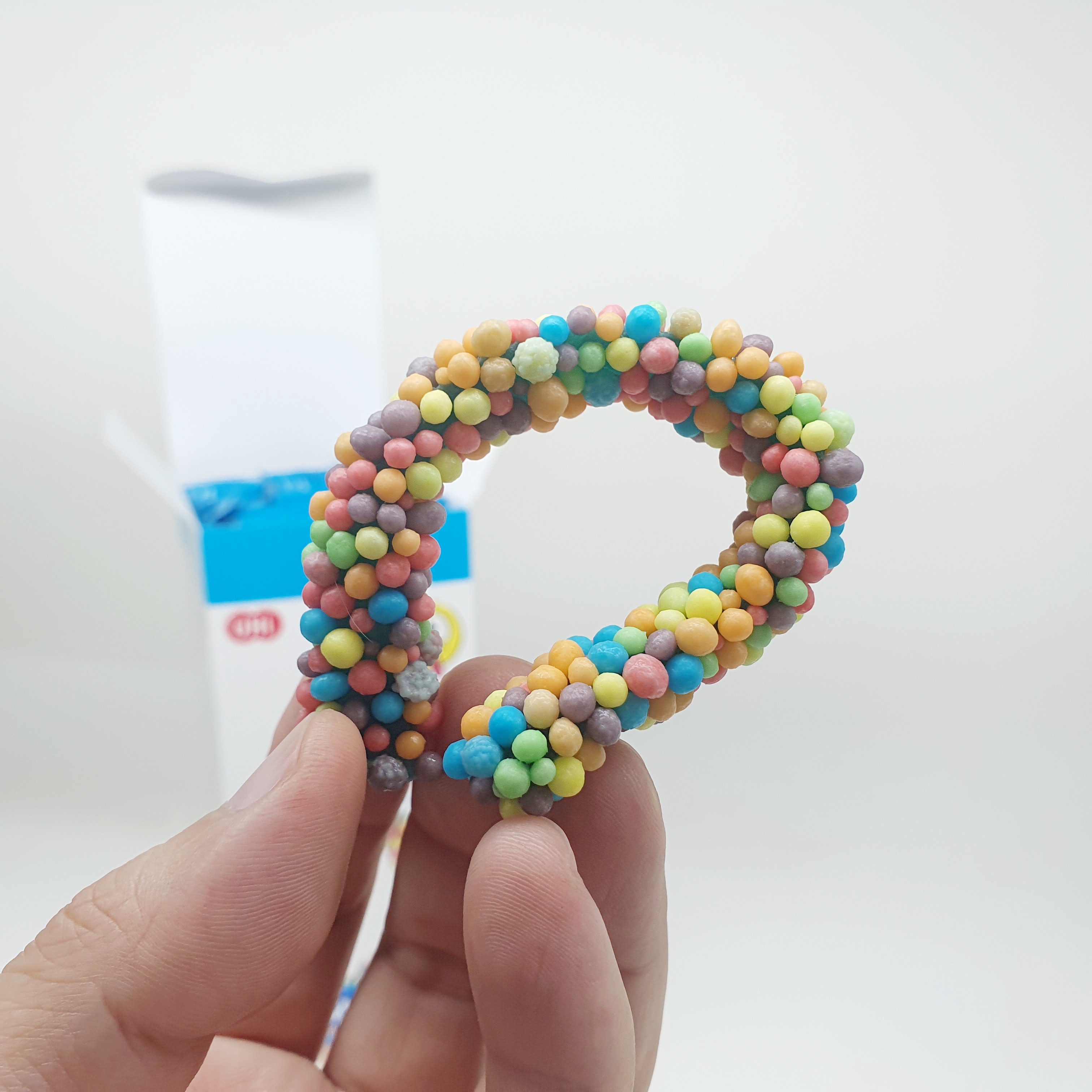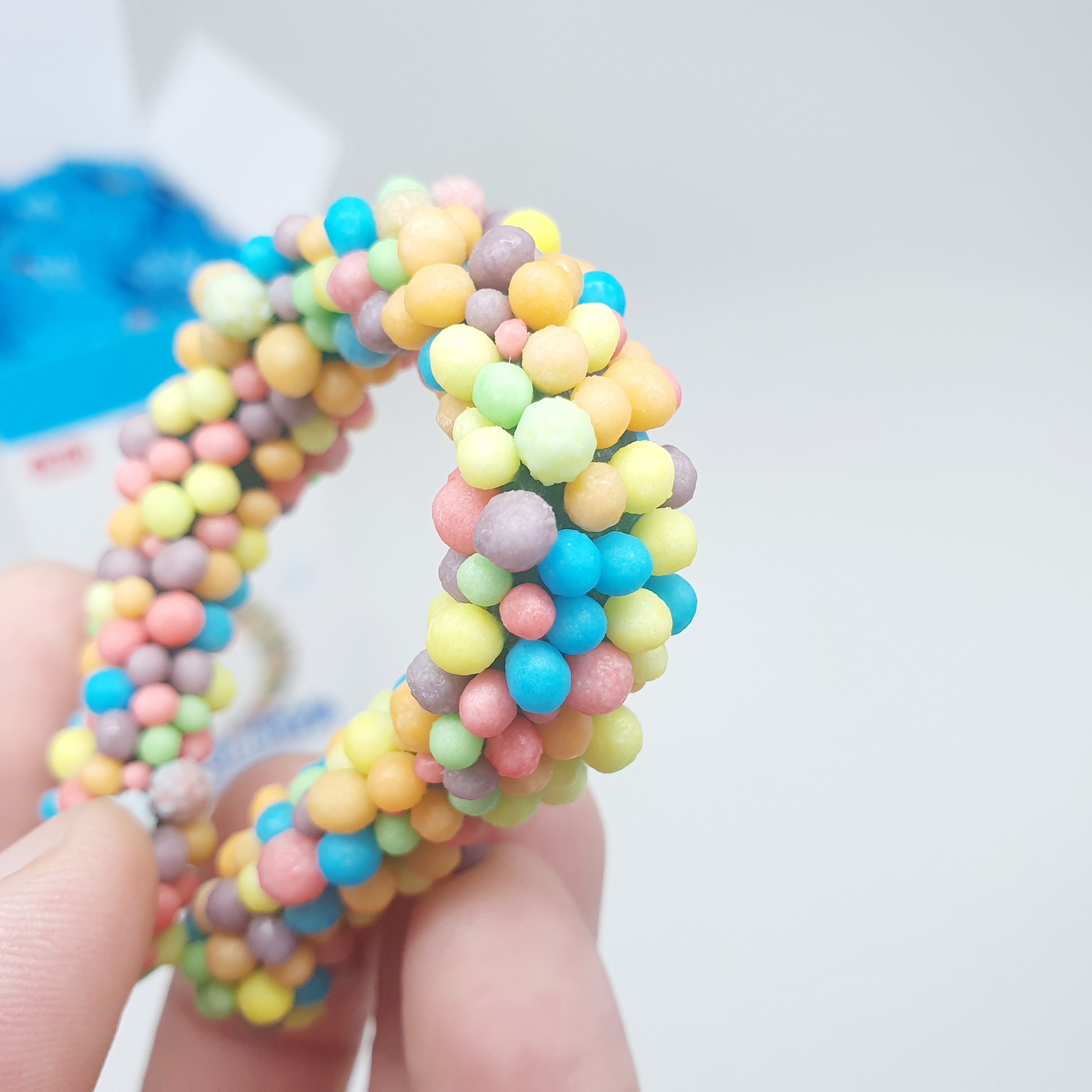 츄베리 시리즈답게 알록달록 알갱이들이 포도송이처럼 달려 있는데, 이번 제품은 길쭉한 막대 형태에 붙어 있어요.