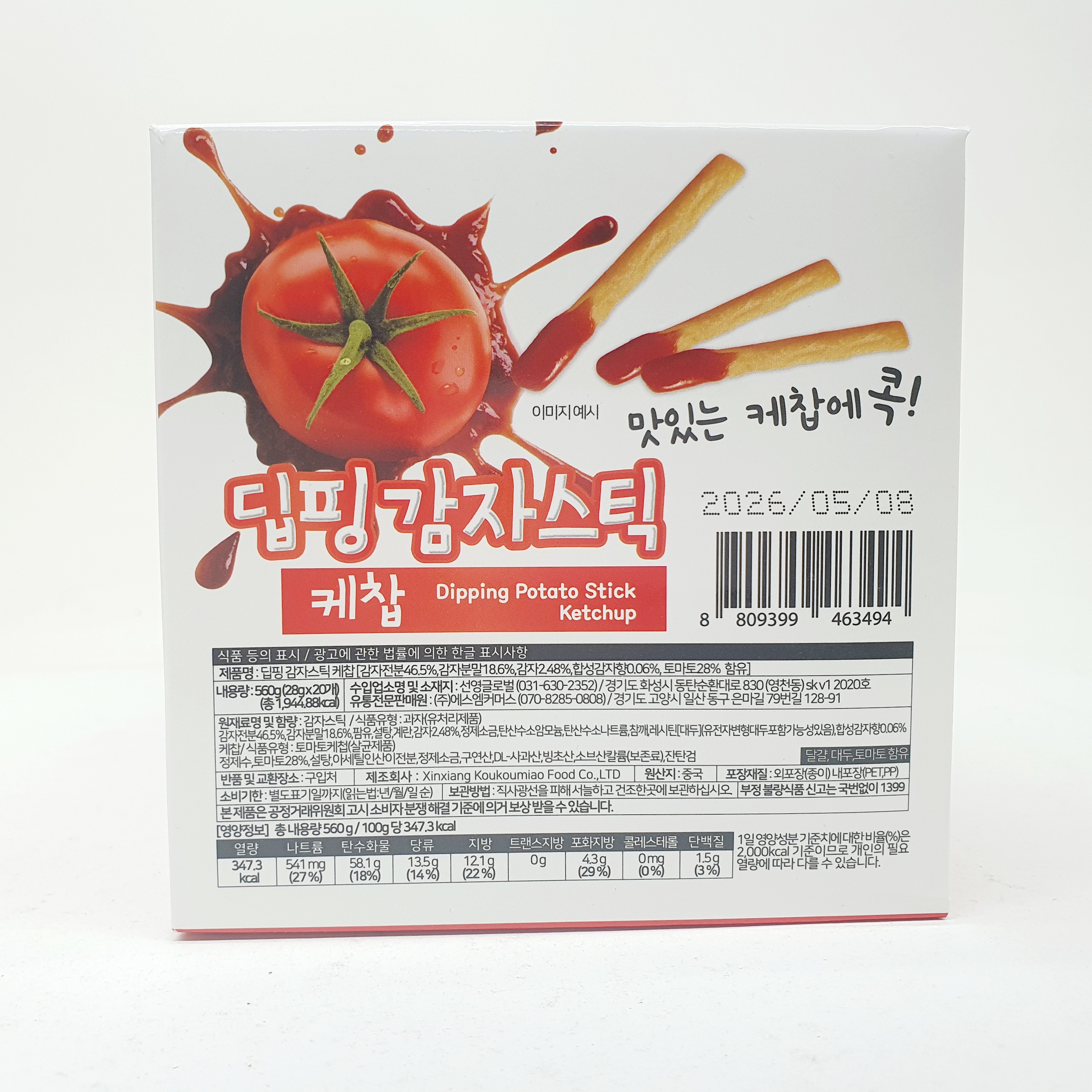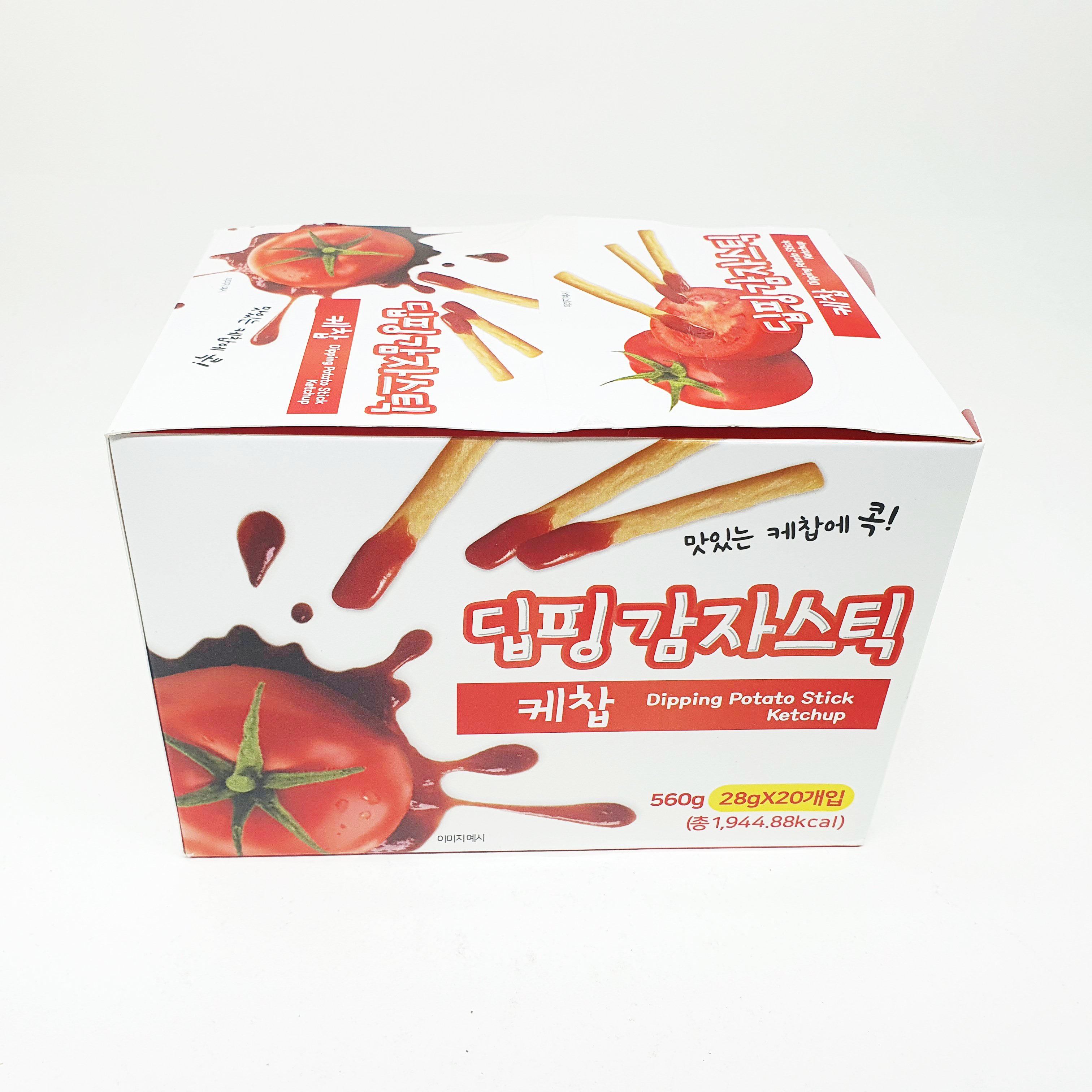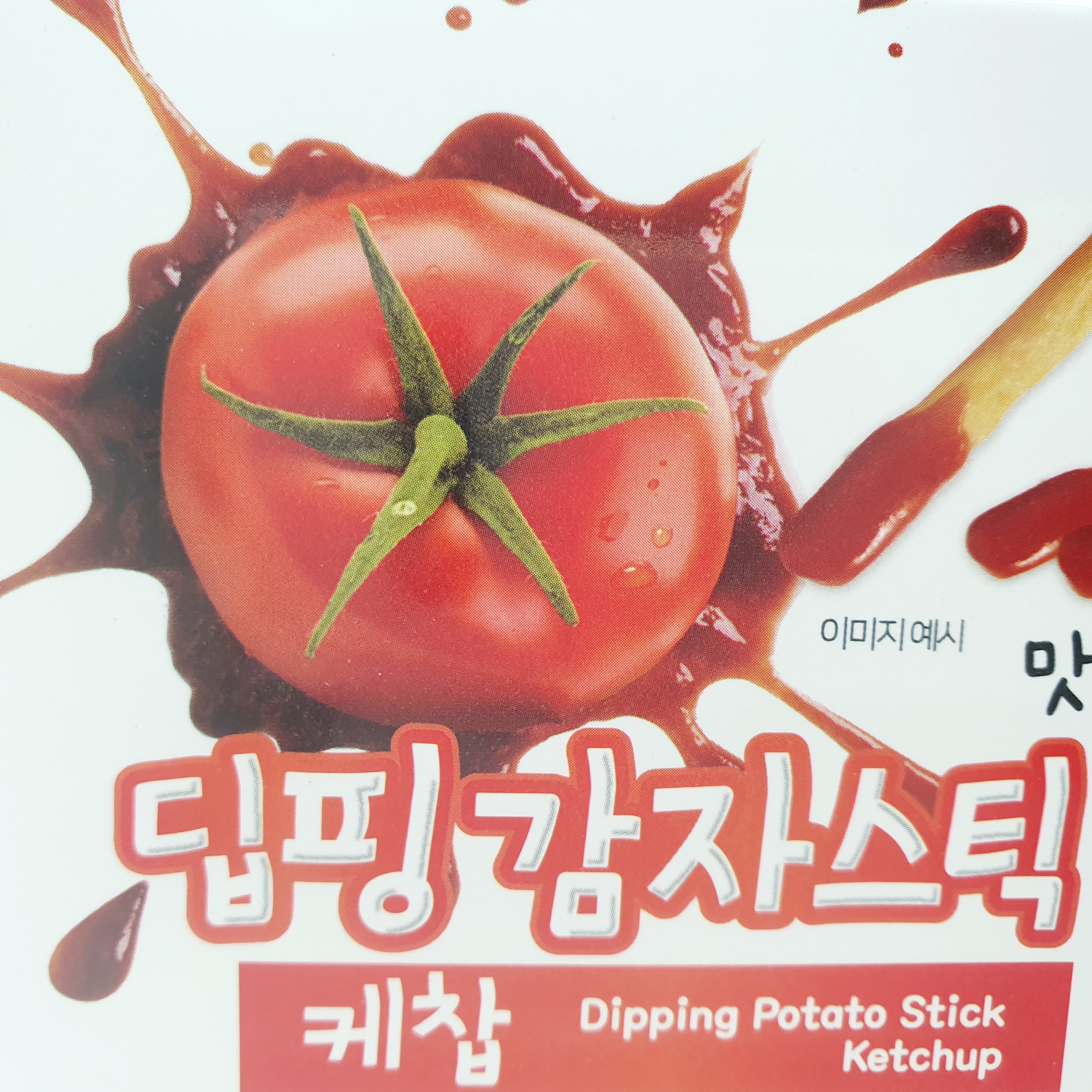 - 제품명: 딥핑 감자스틱 케찹 [감자전분 46.5%, 감자분말 18.6%, 감자 2.48%, 합성감자향 0.06%, 토마토 28% 함유]