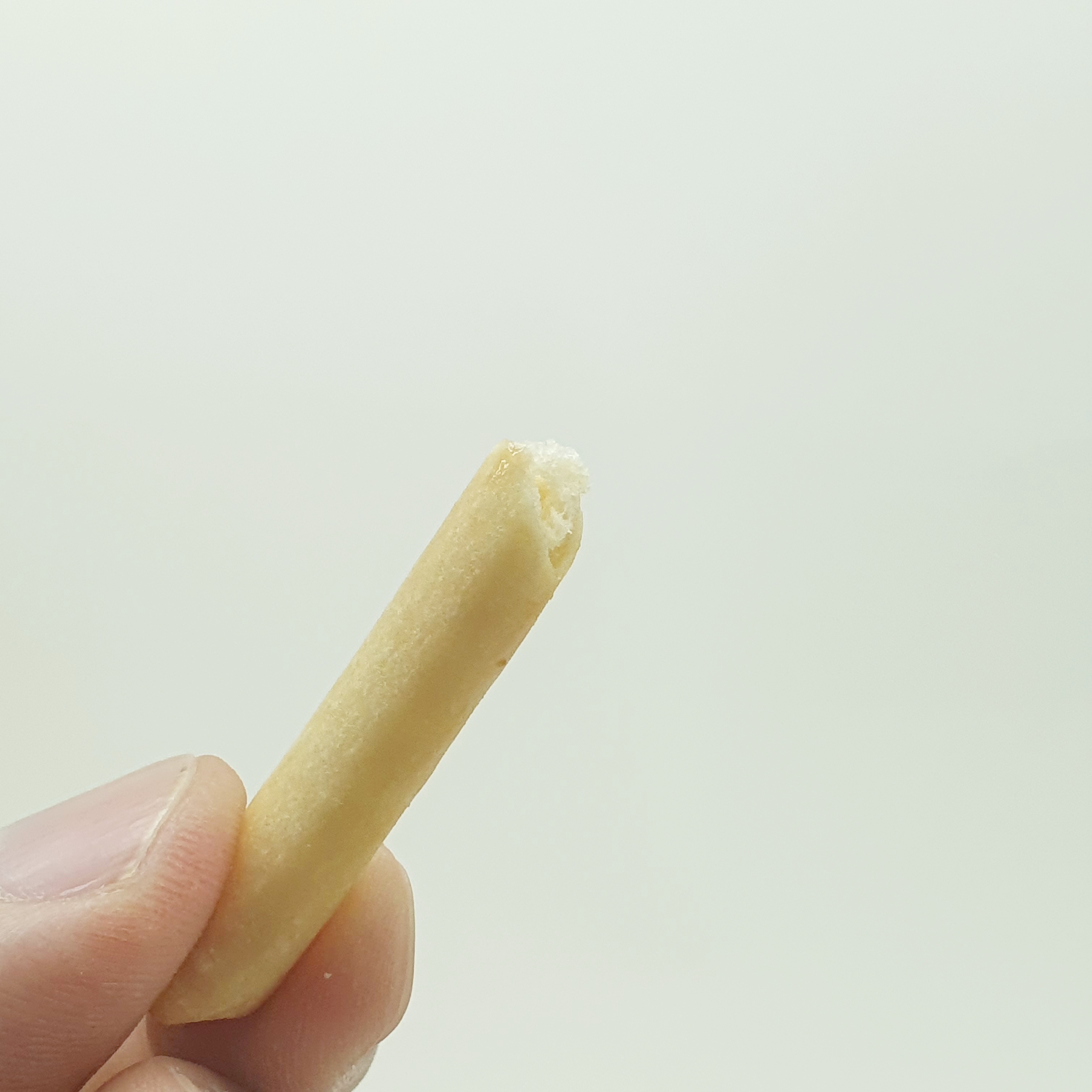 과자 자체는 고래밥과 아주 비슷한 식감인데, 길쭉하게 뽑아내서 더 바삭하고 담백해요.