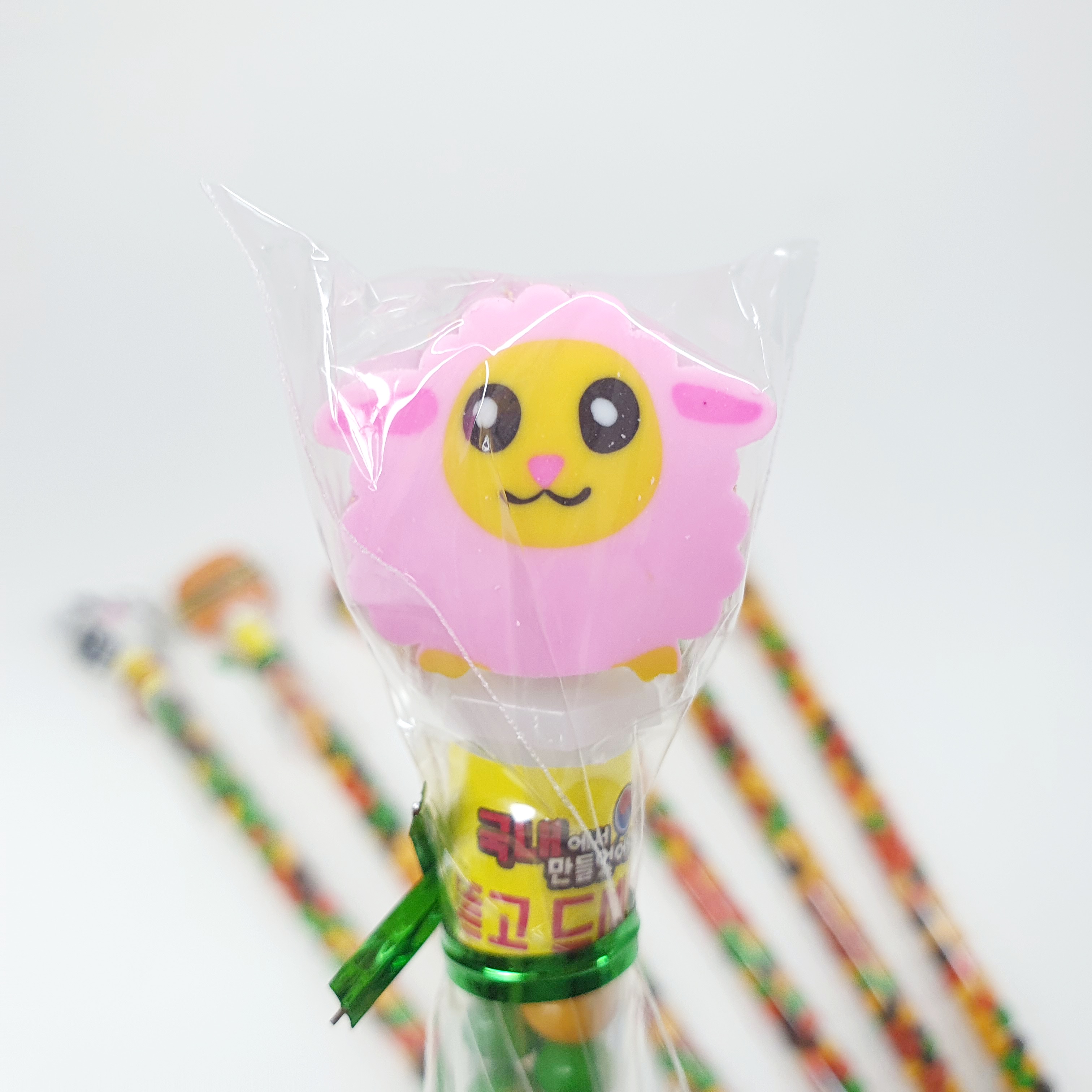 막대기 끝에 귀여운 캐릭터 지우개가 달려 있어요!