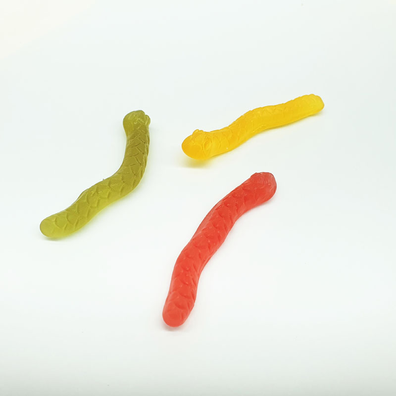 내용물을 열어보면 빨강, 노랑, 연두색의 세 가지 색상 뱀 젤리가 들어있는데,